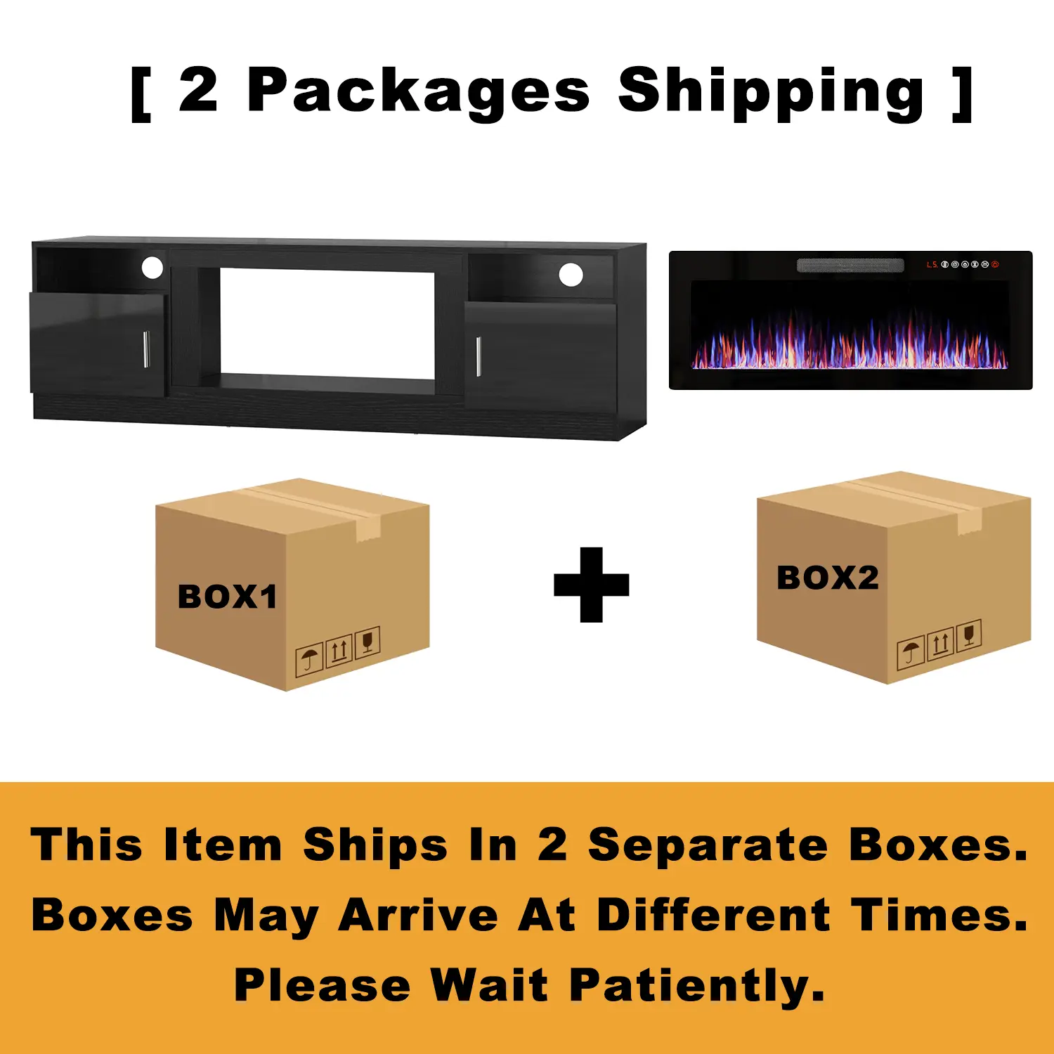 ·[TV Stand with Electric Fireplace] Adopting a 2-in-1 design, combining the TV Stand with the electric fireplace. TV cabinet for TVs up to 80”, and the desktop can bear up to 300 pounds. Make the TV placement more stable and provide a better viewing experience. The electric fireplace has 12 types of flames, and the speed and brightness of 5 types of flames can be adjusted, allowing you to customize various atmospheres.
