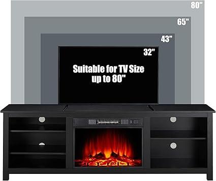 ·Overall Dimensions: 70" W x 25" H x 15.6"D. For flat curved screen TV up to 80 inches. Electric fireplace: 23"x17.5".