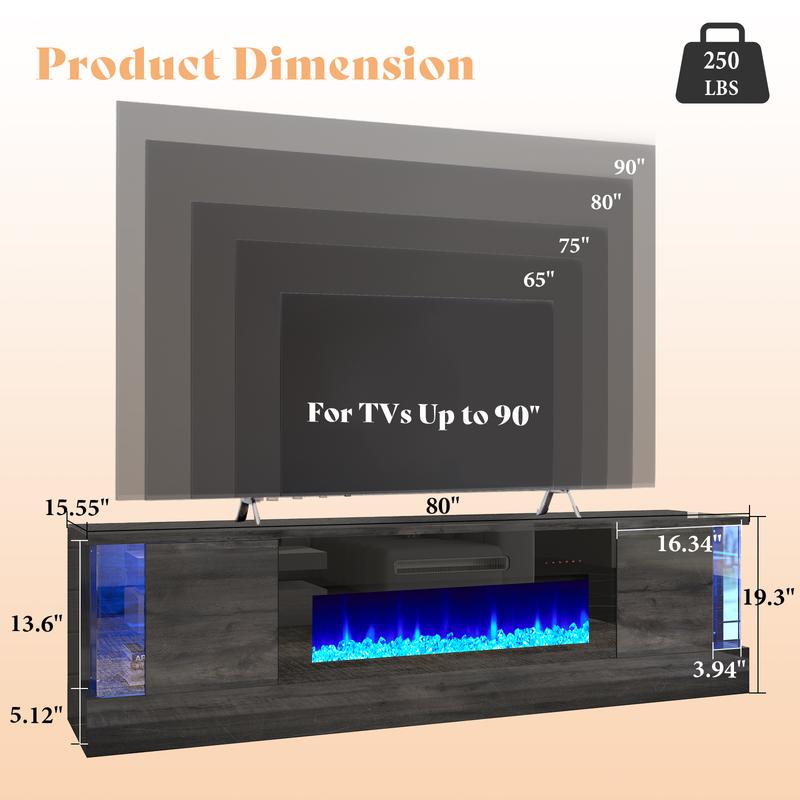 Β·[Dimensions & Specifications] TV Stand: 70"Wx19.3"Hx15.6"D, Electric Fireplace: 36"Wx13.7"Hx4.9"D. TV stand fits TVs up to 80" & 250lbs. Clear & detailed assembly instructions included, total includes 2 cartons & possibly delivered on separate days