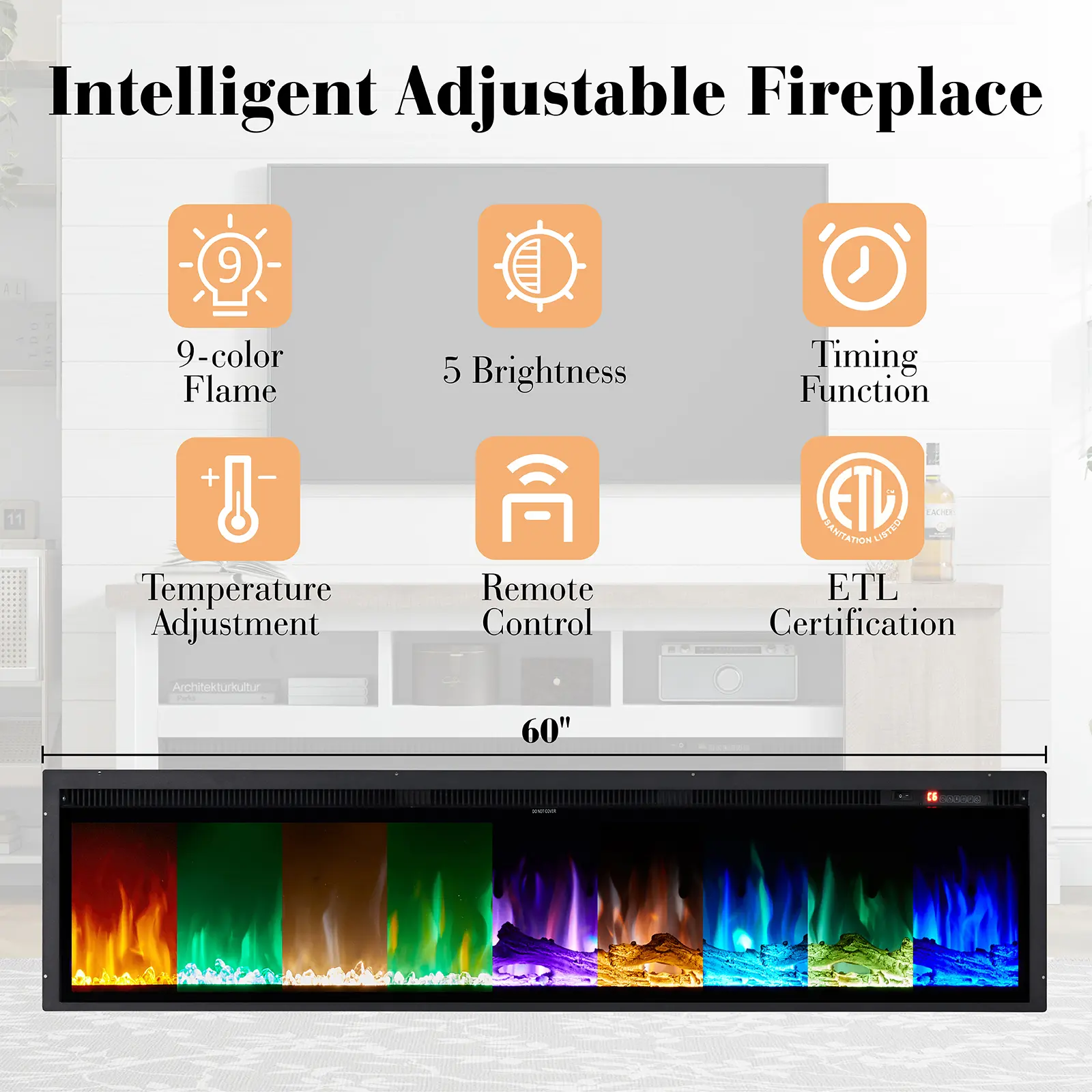 Fireplace Functionality: The Black fireplace features nine colors that provide both warmth and visual appeal. Changeable crystals and wood add a personalized touch and create a wonderful atmosphere.