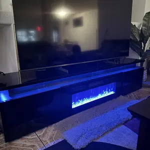 Modern Style: The double-layer design, high-gloss surface, and 2 large storage cabinets on both sides all highlight the modern style of this black fireplace TV stand, which can be integrated into various living rooms