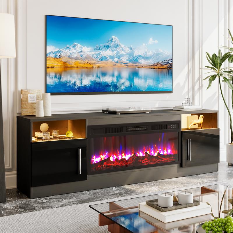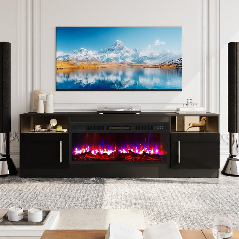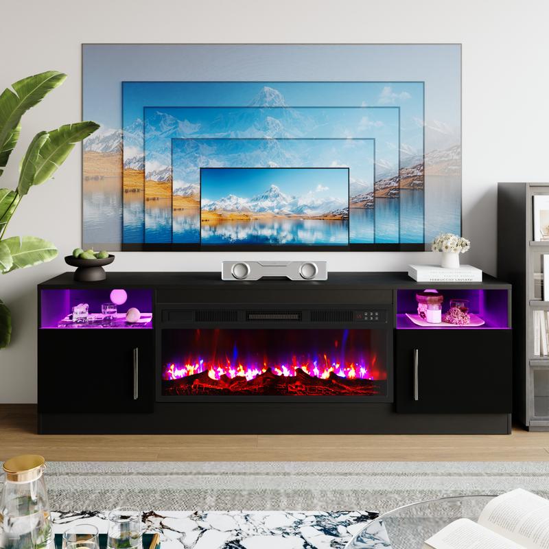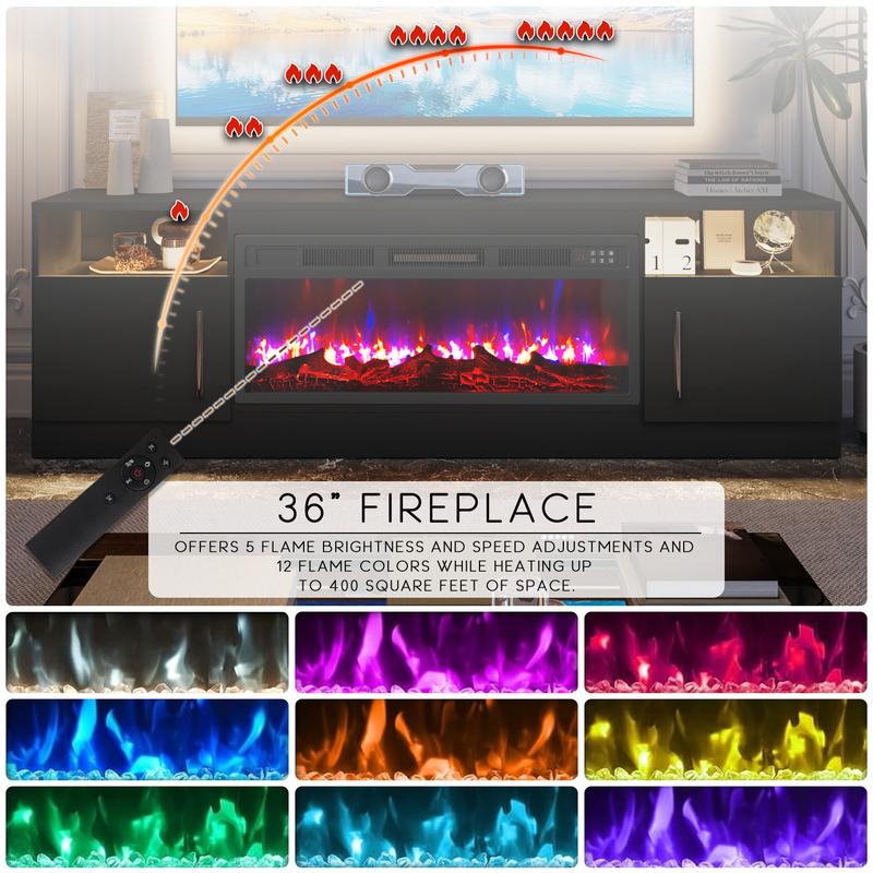 ·【Tv Stand】This fireplace TV stand combines a 70" L × 13.8" W × 23" H TV stand with an 36" electric fireplace, making this TV stand a versatile home entertainment center. This electric fireplace TV cabinet is sized to fit TVs up to 80 inches