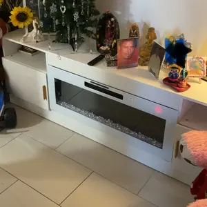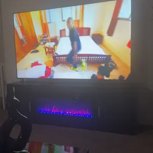 ·【3D Flame 36inch Fireplace】Two heating settings 750W-1500W, you can set the temperature you want, and its powerful heating element will bring your 400 square feet room to the perfect temperature.The remote control and touch screen make it easier to control every function of the electric fireplace, power switch, 1 to 8 hours timer control, independent switch for heat and flame,5 adjustable flame brightness and speed, sleep mode function.