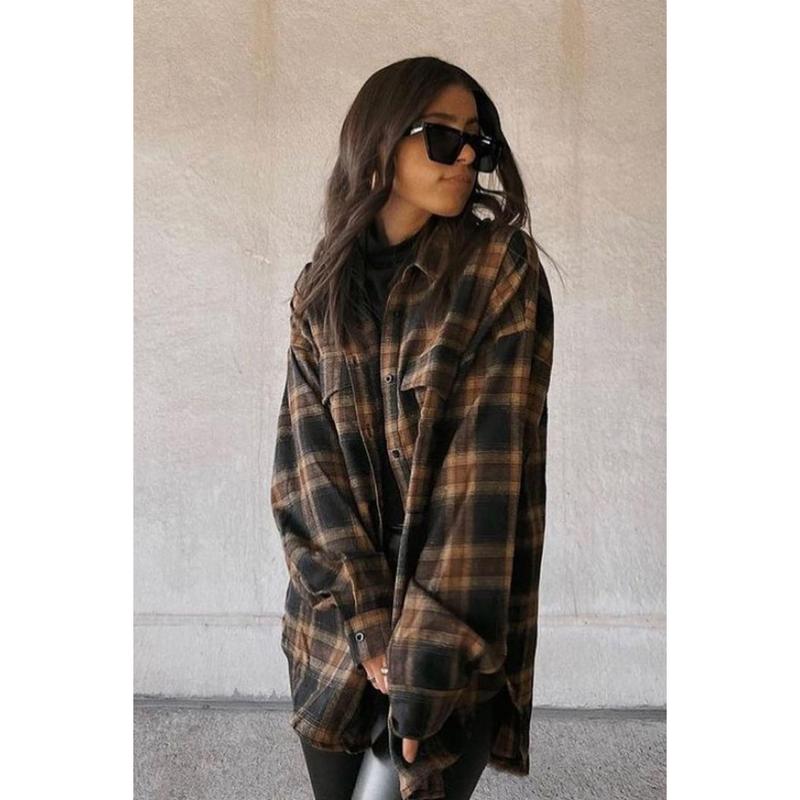Plaid flannel comes in OS. #flannel #flannelseason #flanneloutfit #flannelshirt