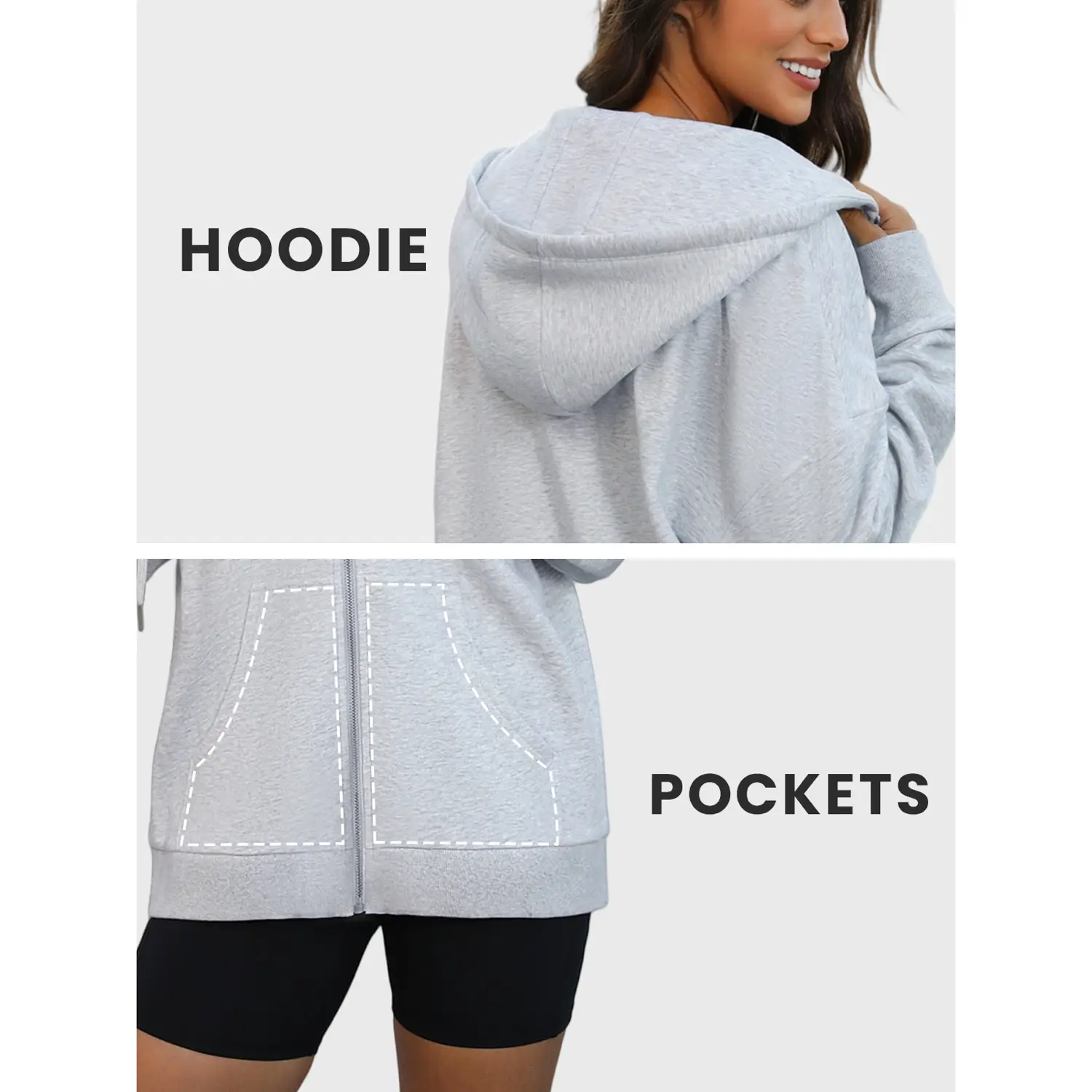 FireSwan Oversized Zip Up Hoodies for Women Long Sleeve Sweatshirts Y2K Casual Track Jackets with Pockets