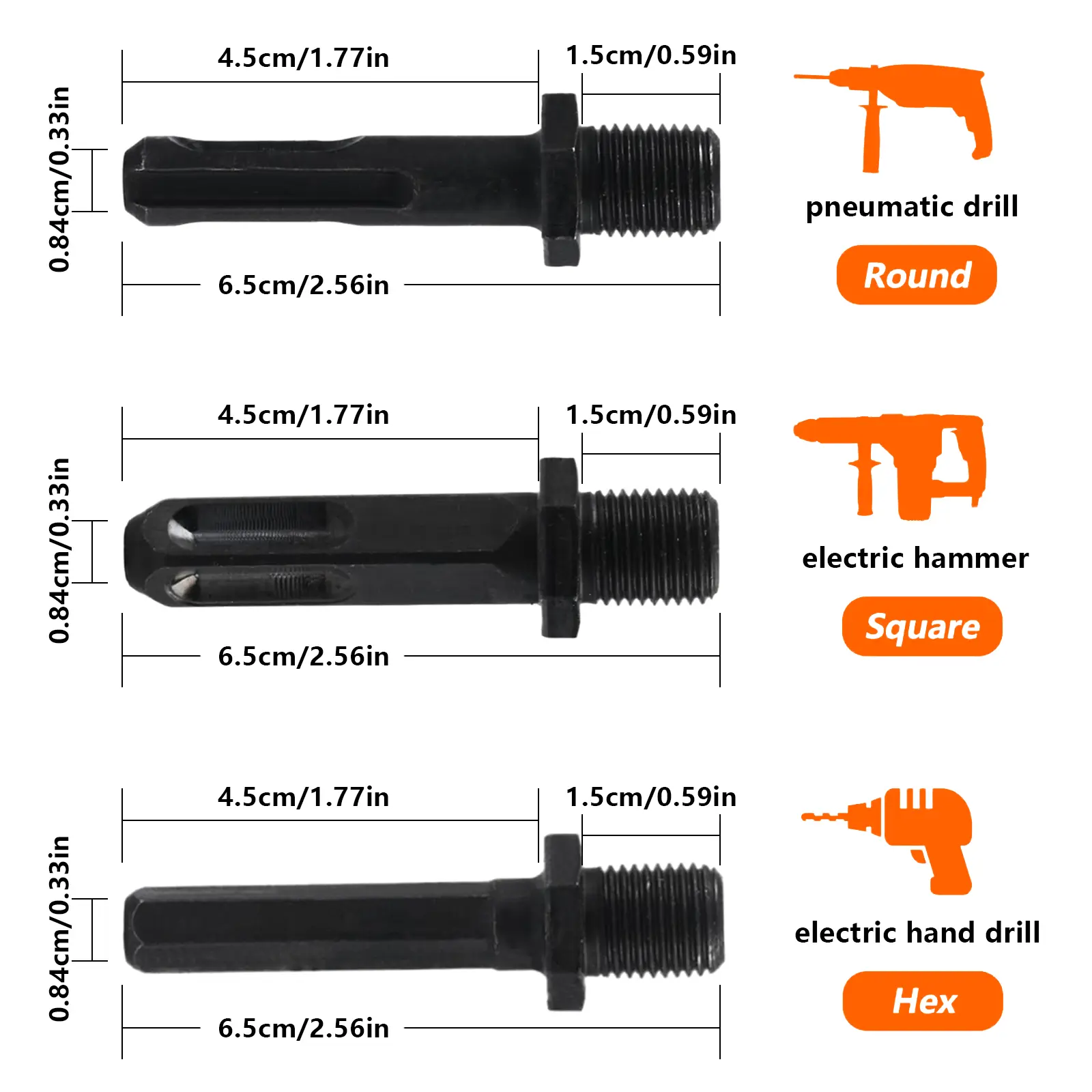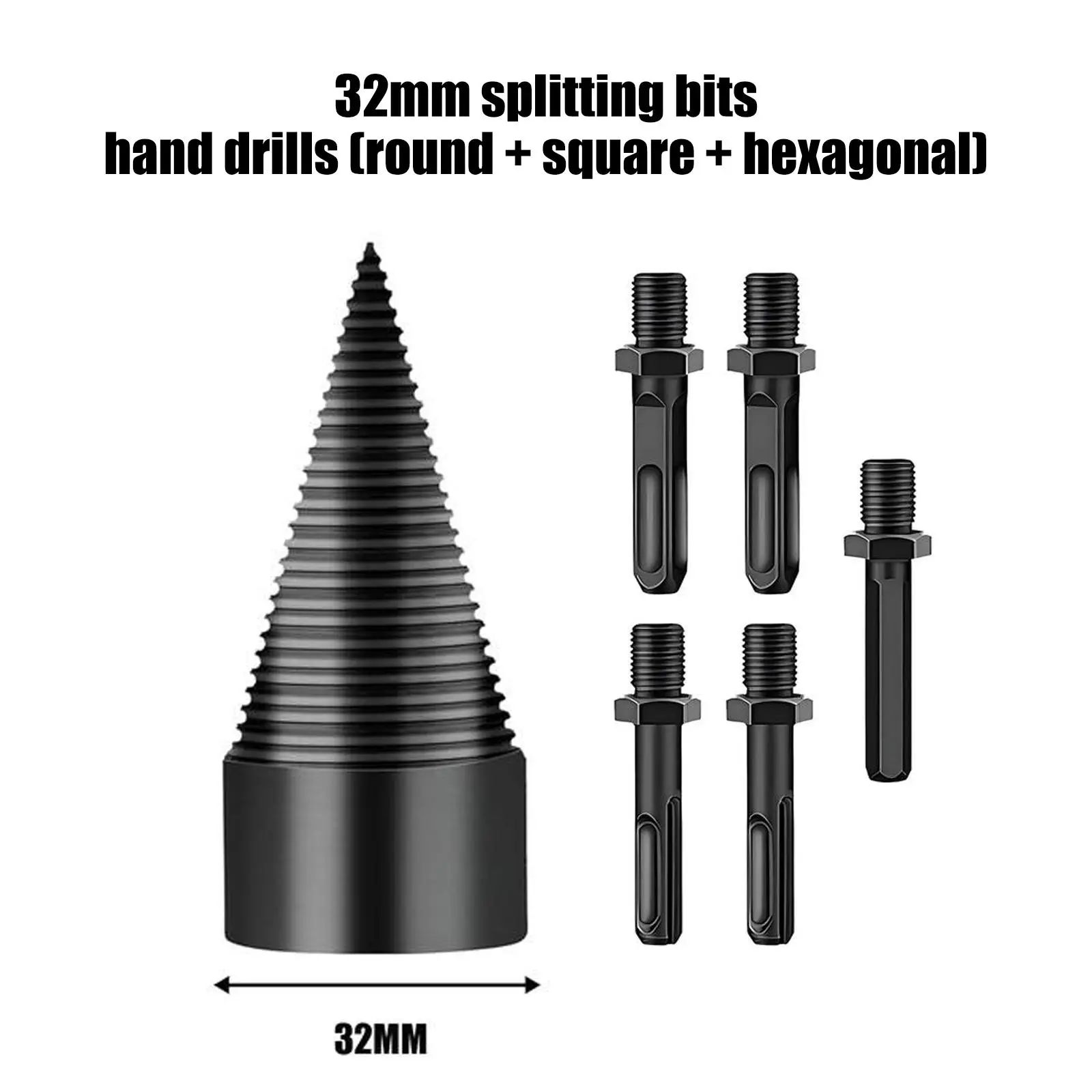 Comes with 1 drill bits (32mm) and 5 shanks (round, hex, and square) for compatibility with most power drills. Note: 32mm requires ≥750W drill.