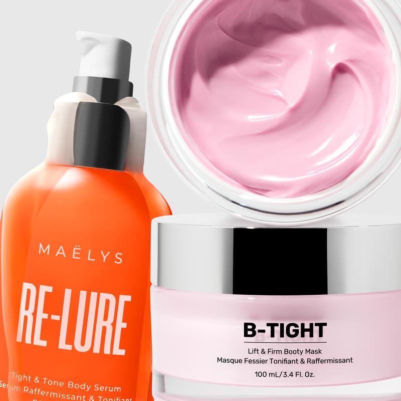 RE-LURE is a clinically proven body serum that was designed to minimize the look of stretch marks and tighten the look of skin on the bum & thighs. It’s formulated with Hyaluronic Acid & Chlorella to visibly hydrate & tighten skin.