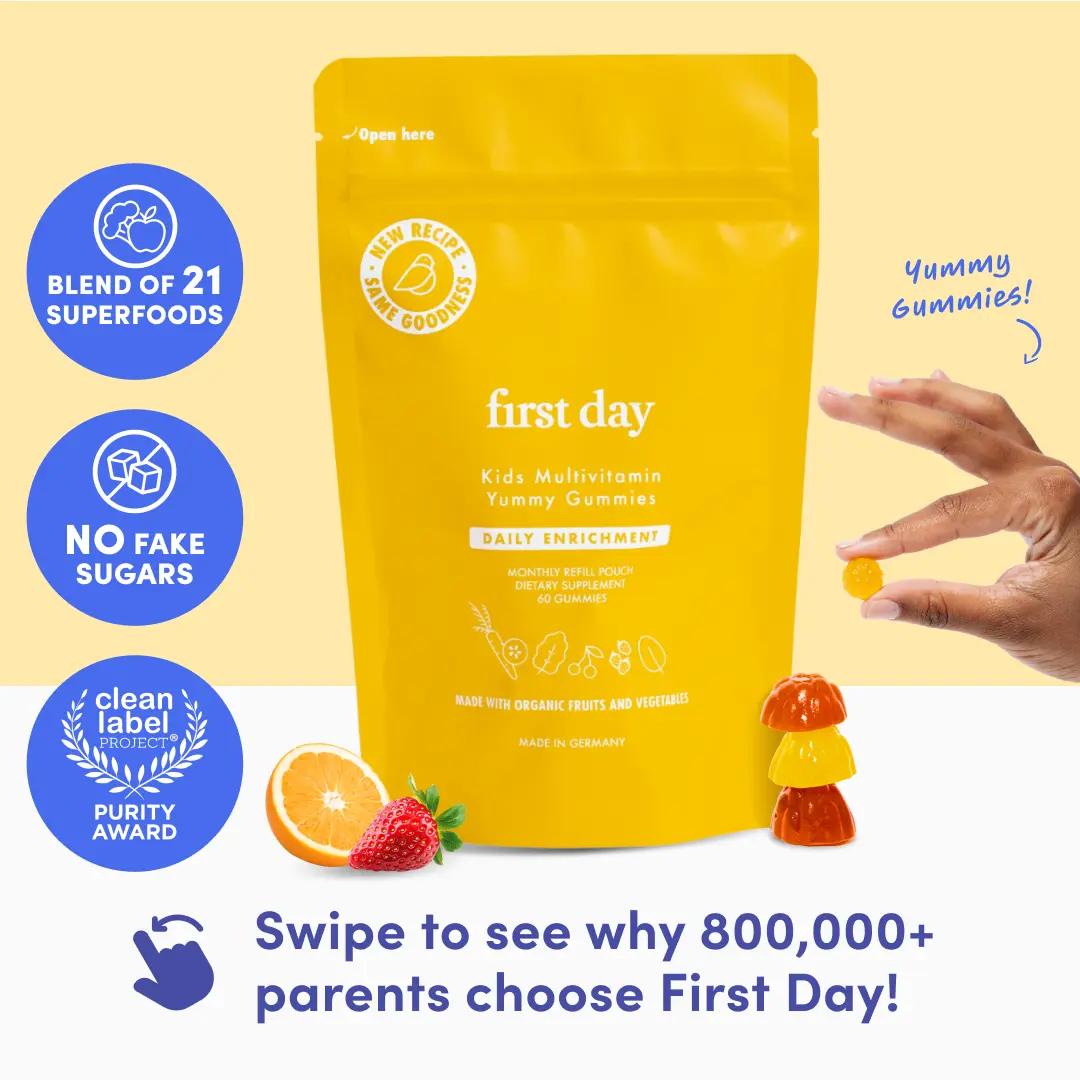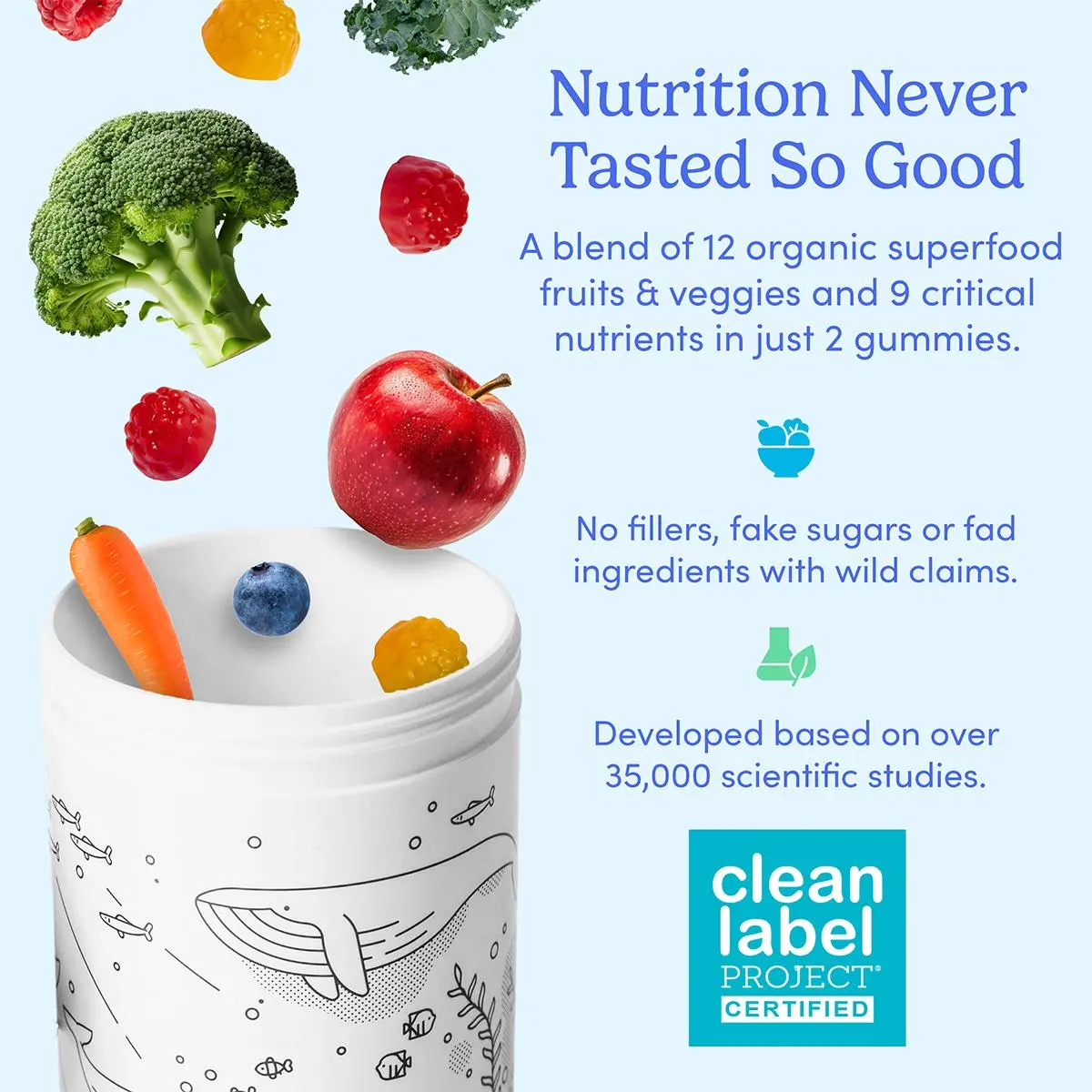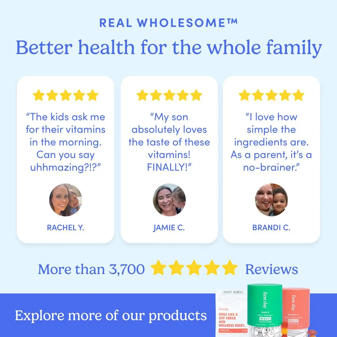 We designed our Kids Multivitamin from the ground up with experts to ensure your children are getting exactly what their bodies need. We meticulously combed through 35,000+ studies on pediatric health so that you'll be confident they're getting all the essentials for healthy growth and development.*