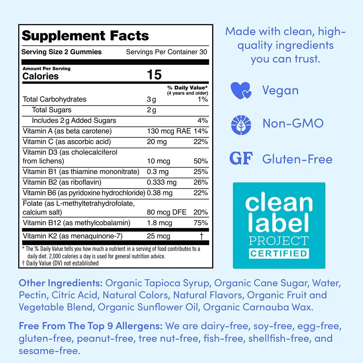 Packed with 9 Key Vitamins to Support Critical Areas for Optimal Growth and Development: Vitamin D3 (Bone Support), Vitamin C (Immunity Strength), Vitamin B2 (Focus Support), Vitamin B1 (Brain Health), Vitamin A (Eye/Vision Health), Vitamin B12 (Blood Cell Health), Vitamin B9 (Cell Development), Vitamin B6 (Energy Support), Vitamin K12 (Heart Health)