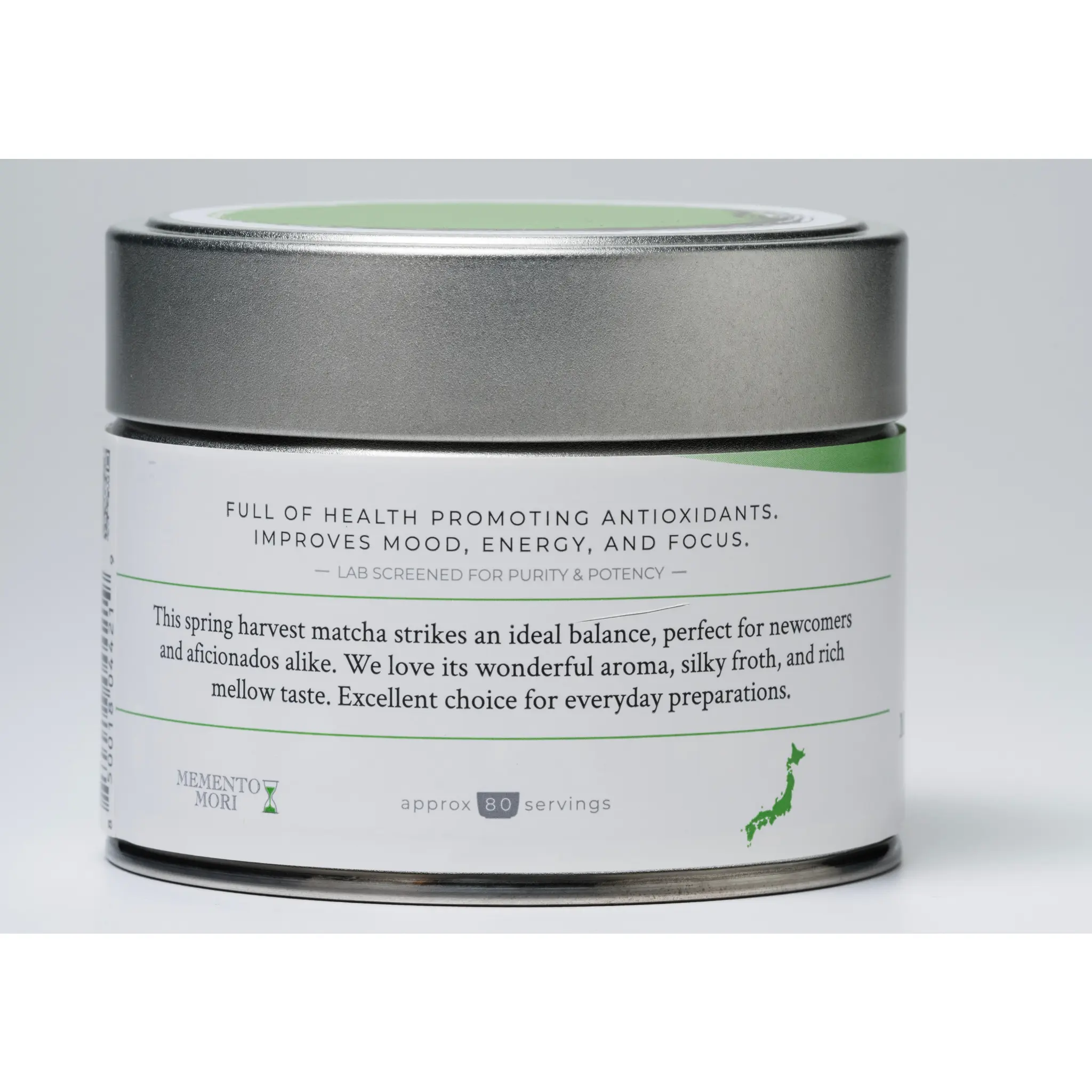This matcha green tea has a wonderful aroma, silky froth, with a rich, mellow taste. As one moves up the scale toward the top grade of matcha, the color becomes a more vivid green, and the flavor becomes even more noble, smooth, and mellow.