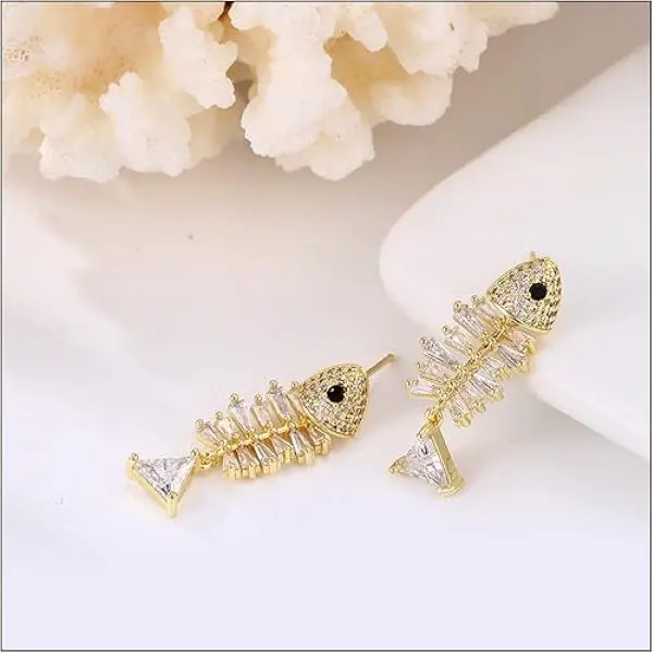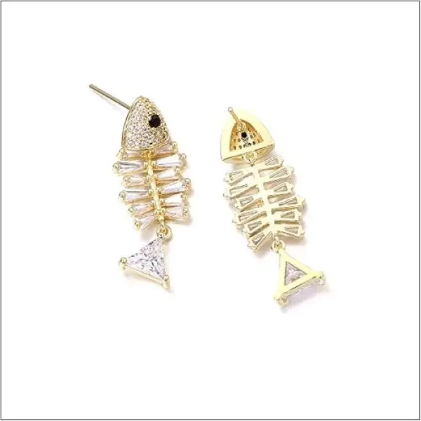 ·Design: Fish Bone Dangle Earrings. These earrings feature a unique fishbone design with a stud back.