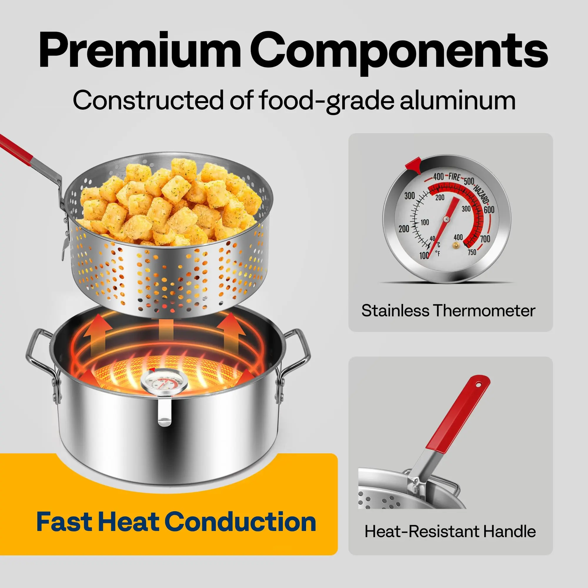 ·Suitable for frying, boiling, and more, this fry pot handles various cooking tasks. It works on cooktops or outdoor propane burners, offering unmatched versatility in your kitchen.