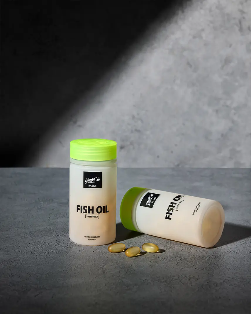 Support your brain and heart health with GHOST BASICS FISH OIL — a daily healthcare essential formulated with 2.4G total Omega-3s per serving. Each serving contains EPA and DHA, two key Omega-3 fatty acids, delivered in enteric coated softgels for zero aftertaste.
