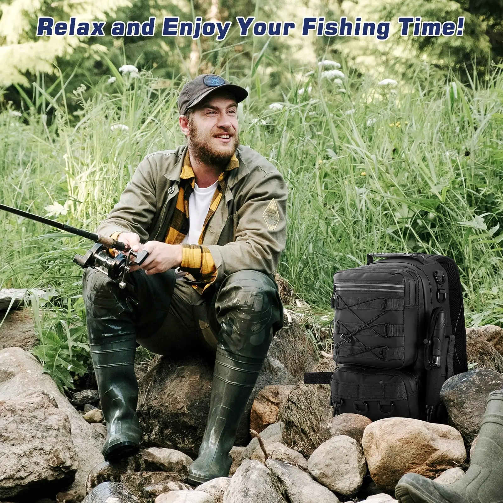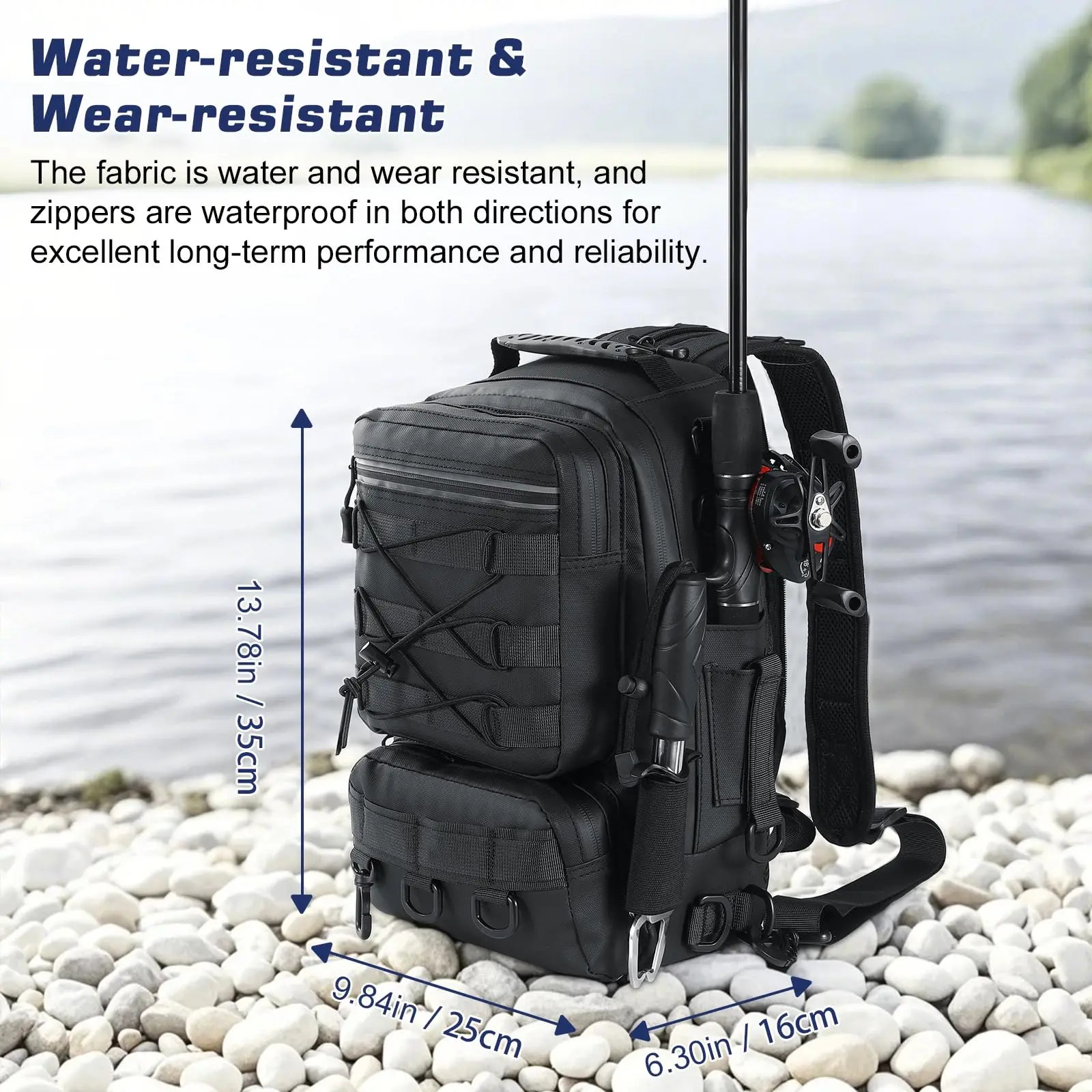 ·Unique Design for Anglers:The fishing backpack can hold two Lua fishing rods. Multiple D-rings and patch straps can be used to hang fishing pliers, fish lip clips and other fishing gears, convenient to use when fishing. And the fishing bag has reflective strips on the outside for added safety when operating in dark environments.