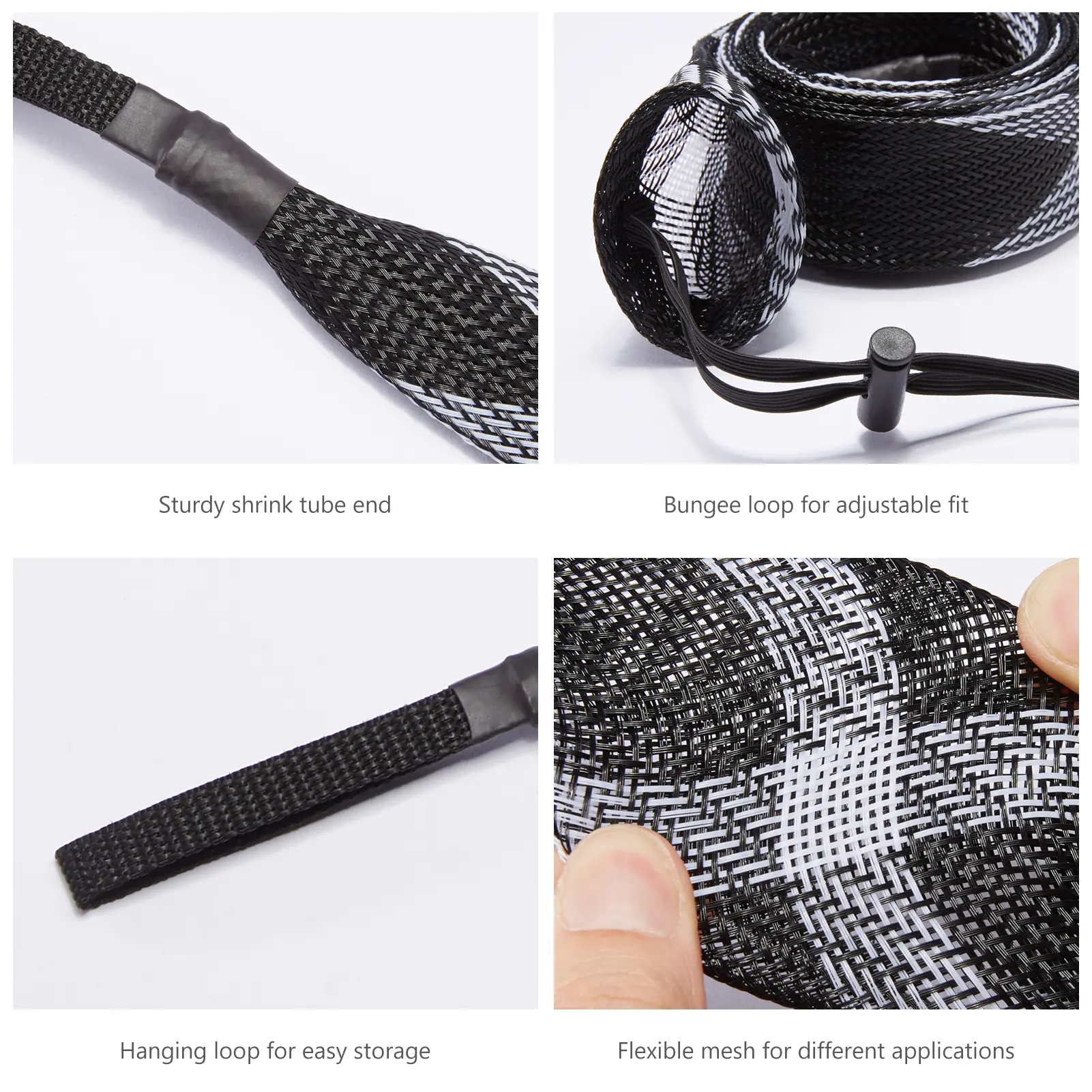 Constructed of abrasive resistant, durable yet lightweight PET mesh sheaths, and adjustable bungee loop