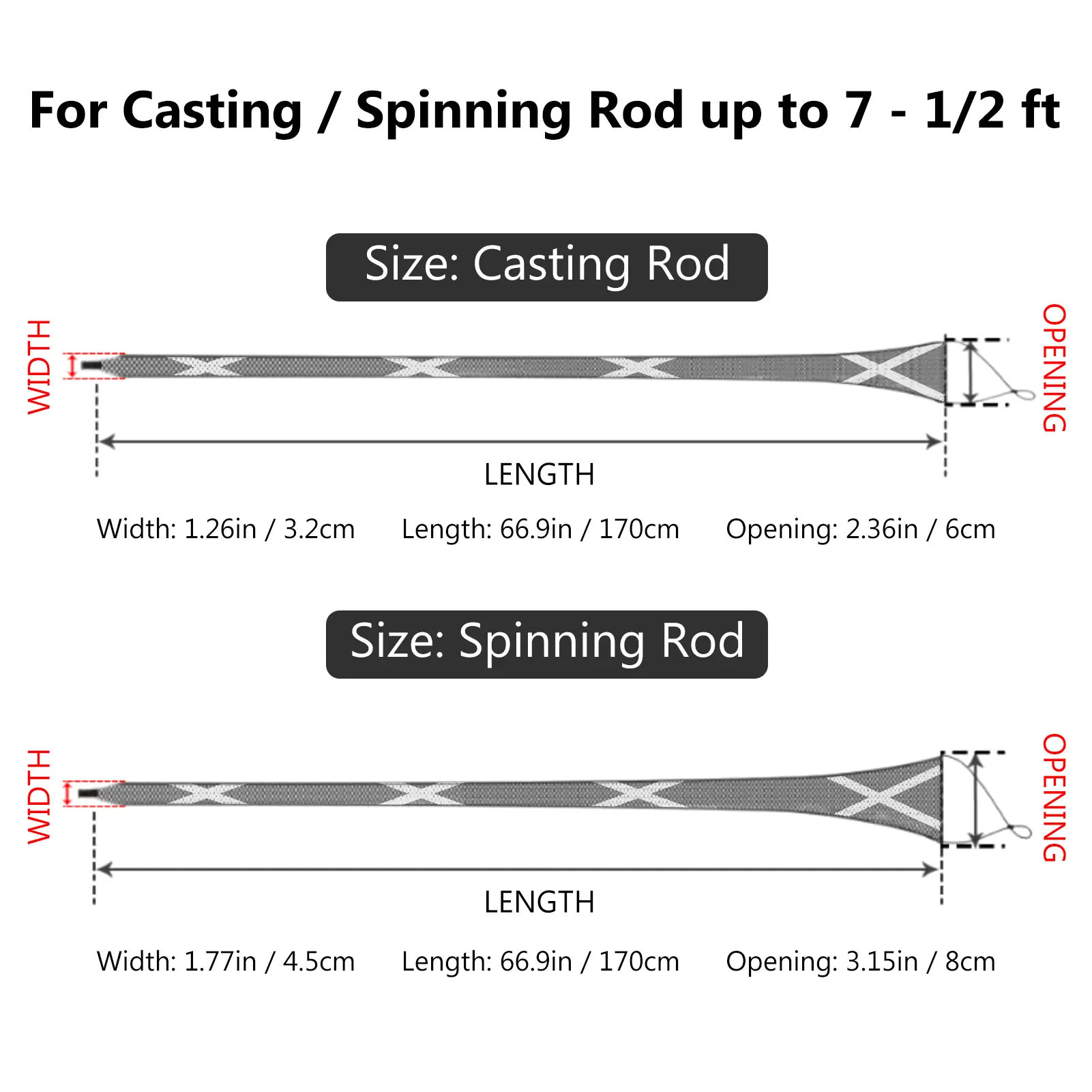 The rod sleeves are tightly woven and expandable, designed to store and protect fishing rods including fragile line guides and rod tips, they will also avoid fishing line from tangles and abrasions when baits are tied on