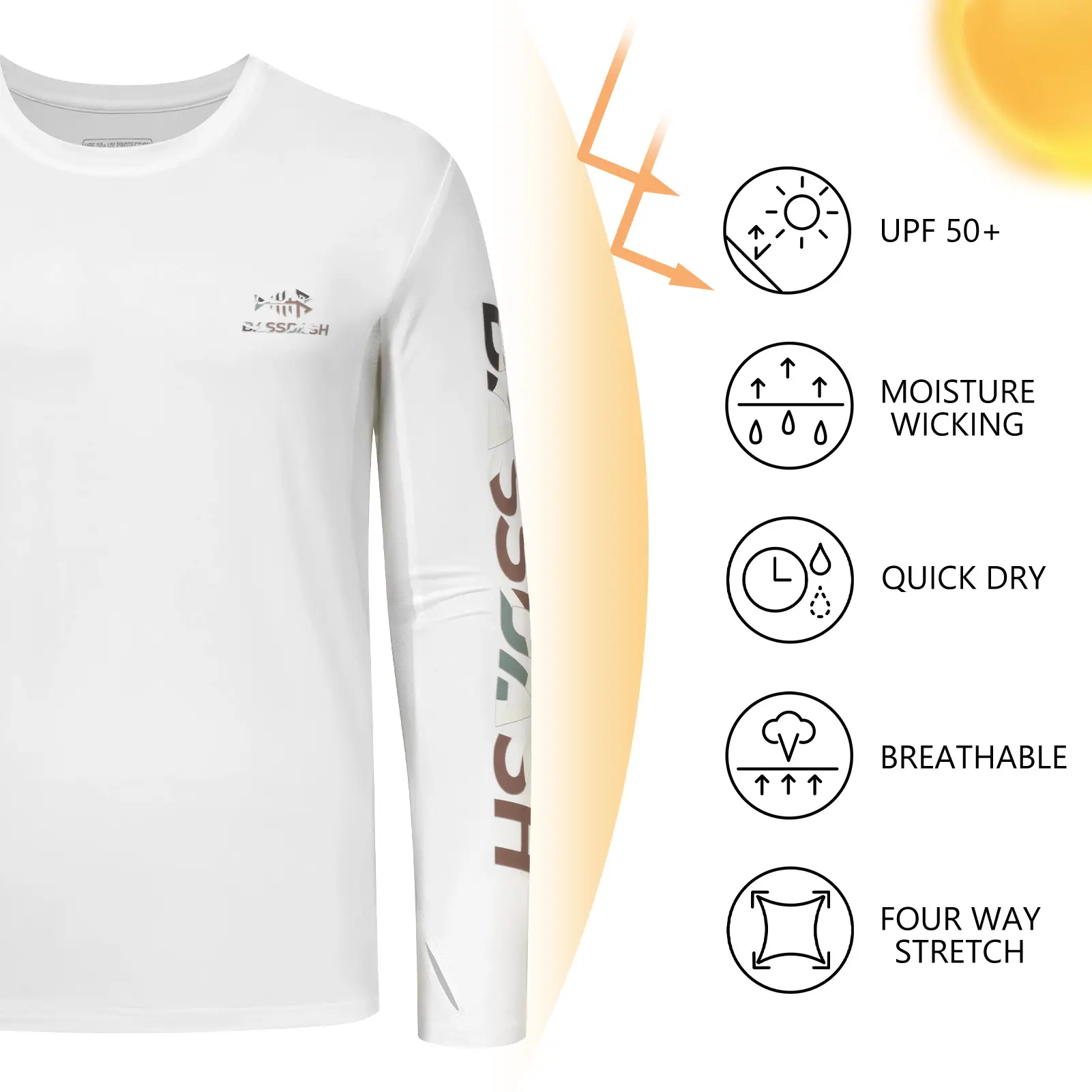 The breathability is enhanced with the mesh panels at two sides of the body and under sleeves; Moisture wicking and quick drying features help you keep cool and dry during activities