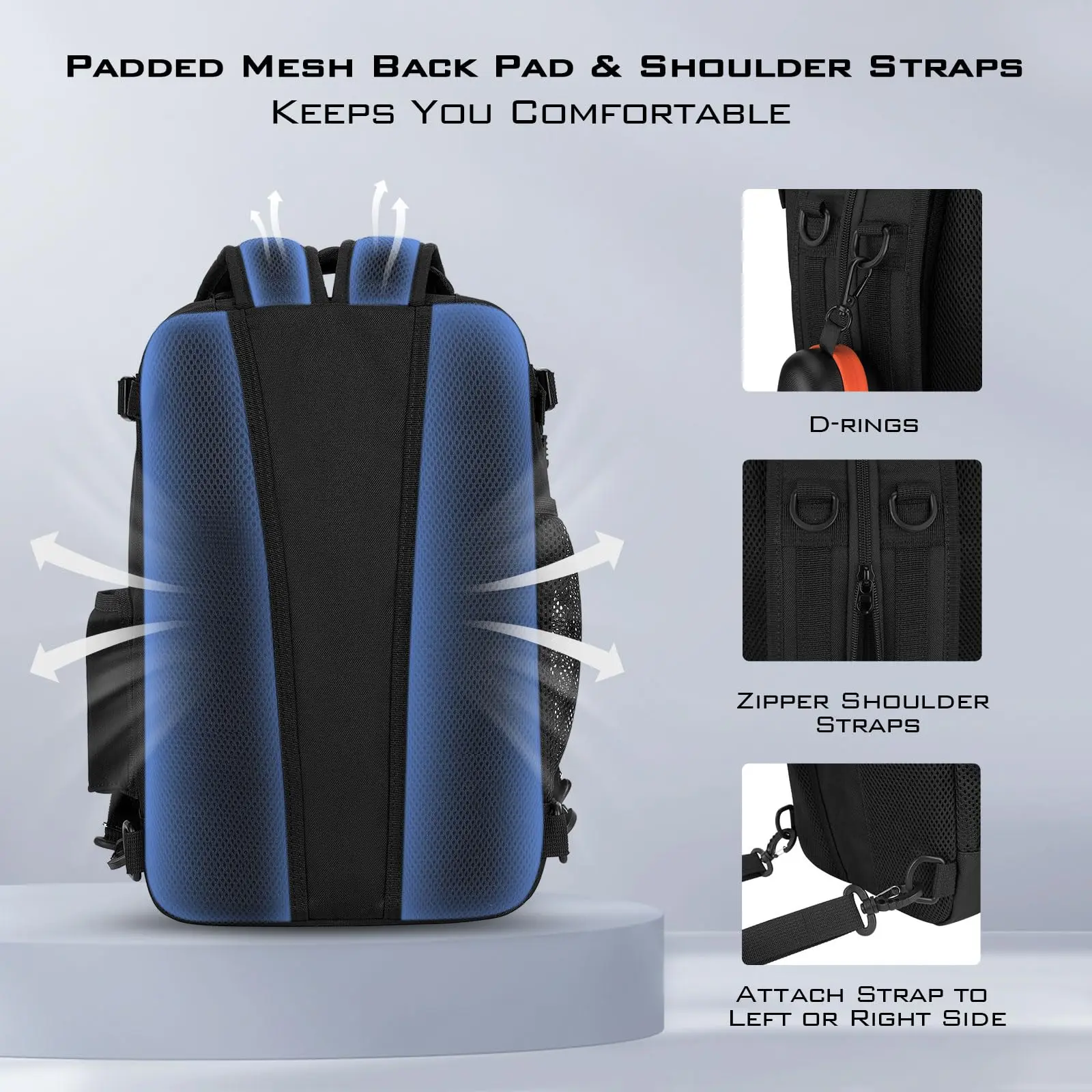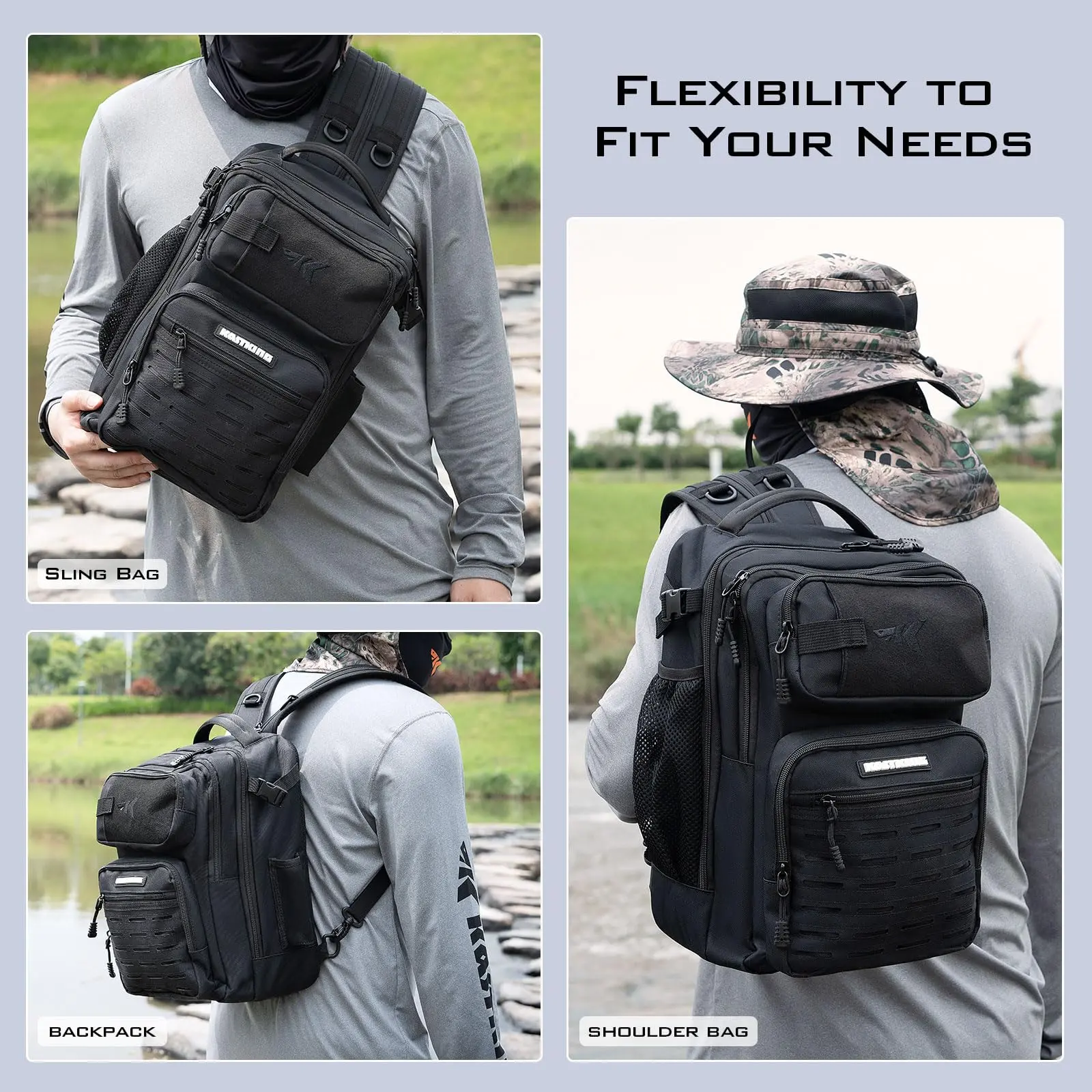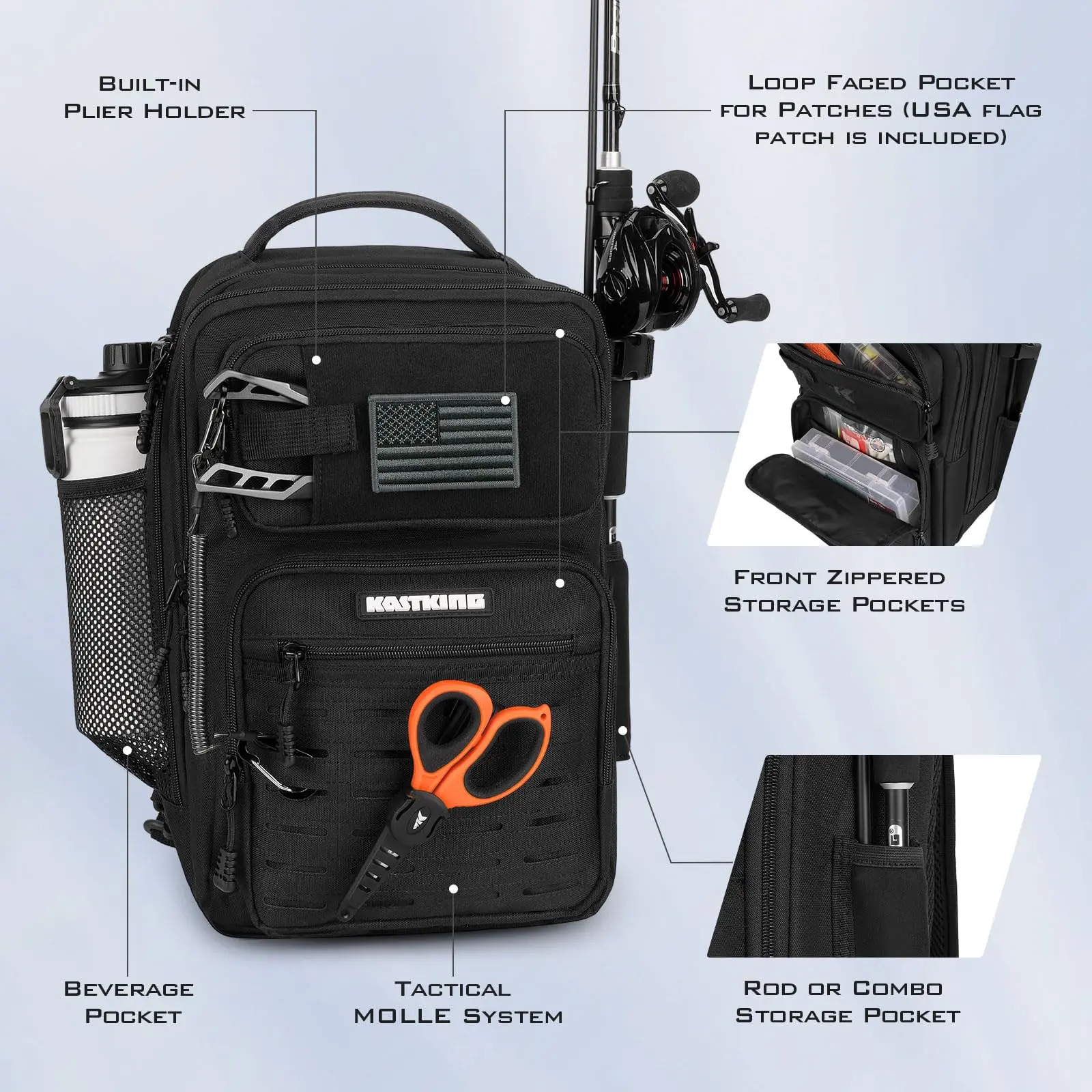 ·VERSATILE DESIGN – KastKing BlowBak Tactical Fishing backpacks are a light-weight, versatile, sling bag designed for the adventurous angler who likes to hike, canoe, kayak, or SUP to more remote fishing locations. The BlowBak offers the essential features you will need to store and carry your fishing rod/ fishing reel, tools, lures, and tackle for a few hours of fishing without weighing you down. (Dimensions – 16.9*10.6*8.3 inches)
