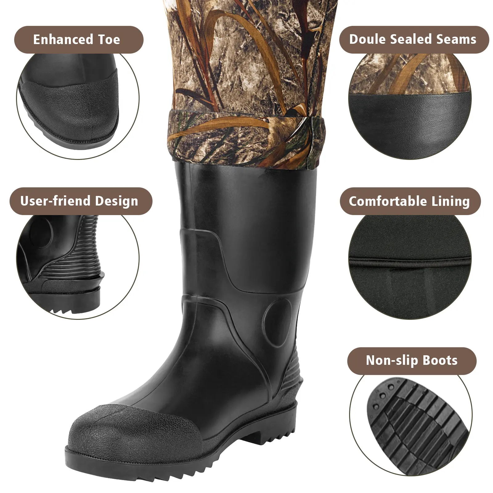【MULTI-PURPOSE】These hunting waders are perfect for hunting, fishing, or just enjoying the outdoors. The neoprene waders is protect your clothing while an extra insulation layer keeps you warm in cold water.