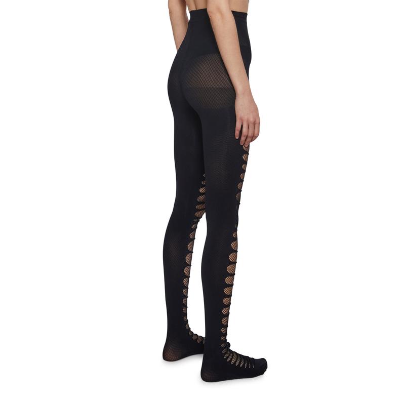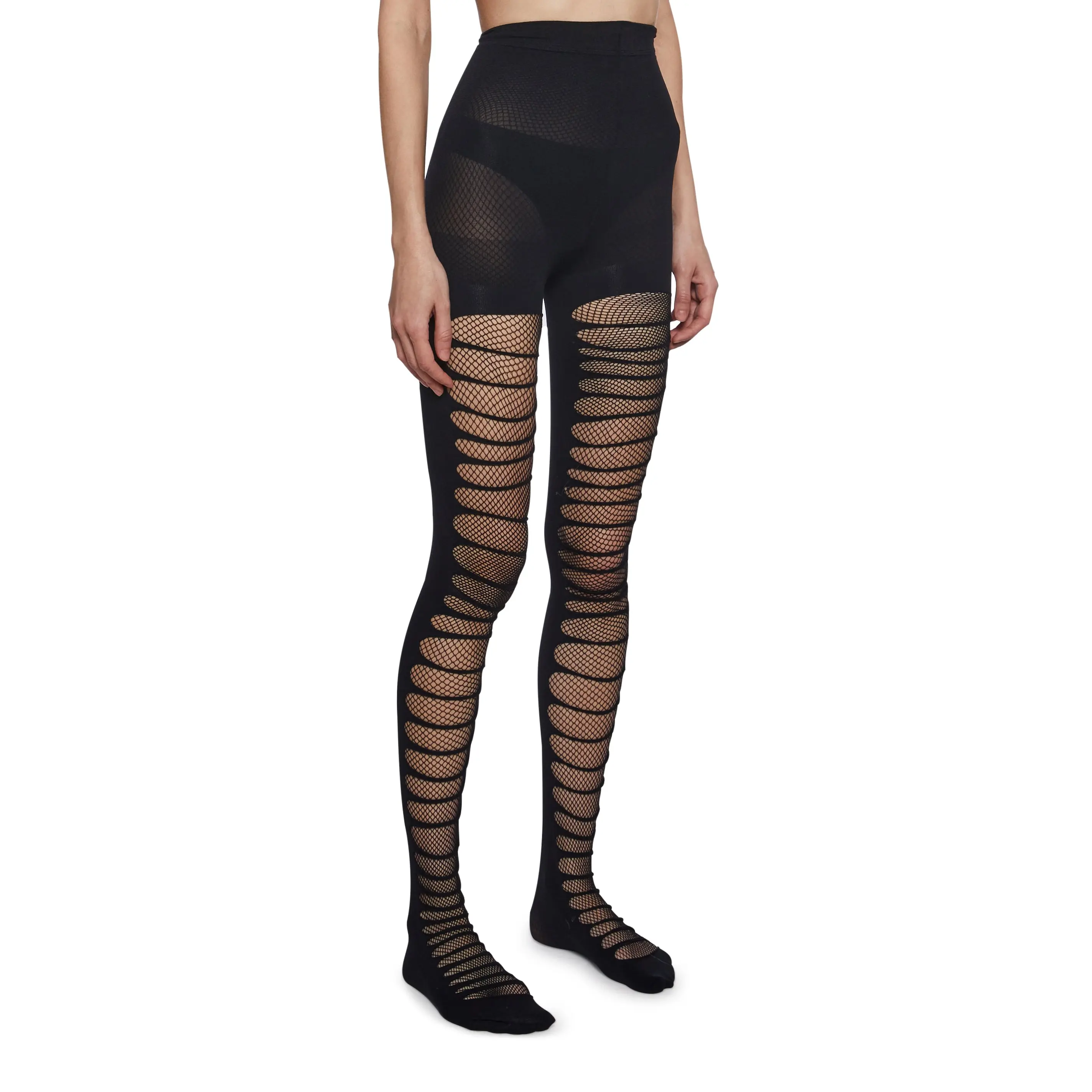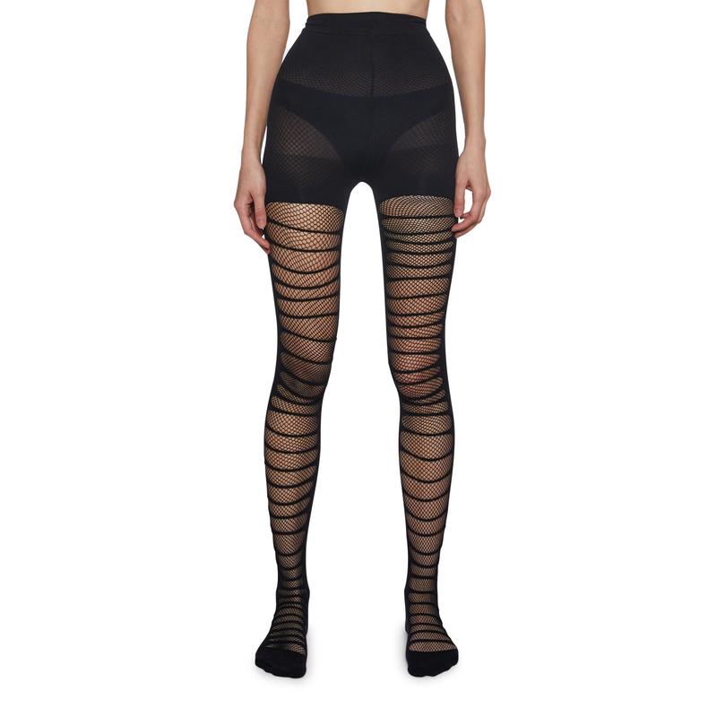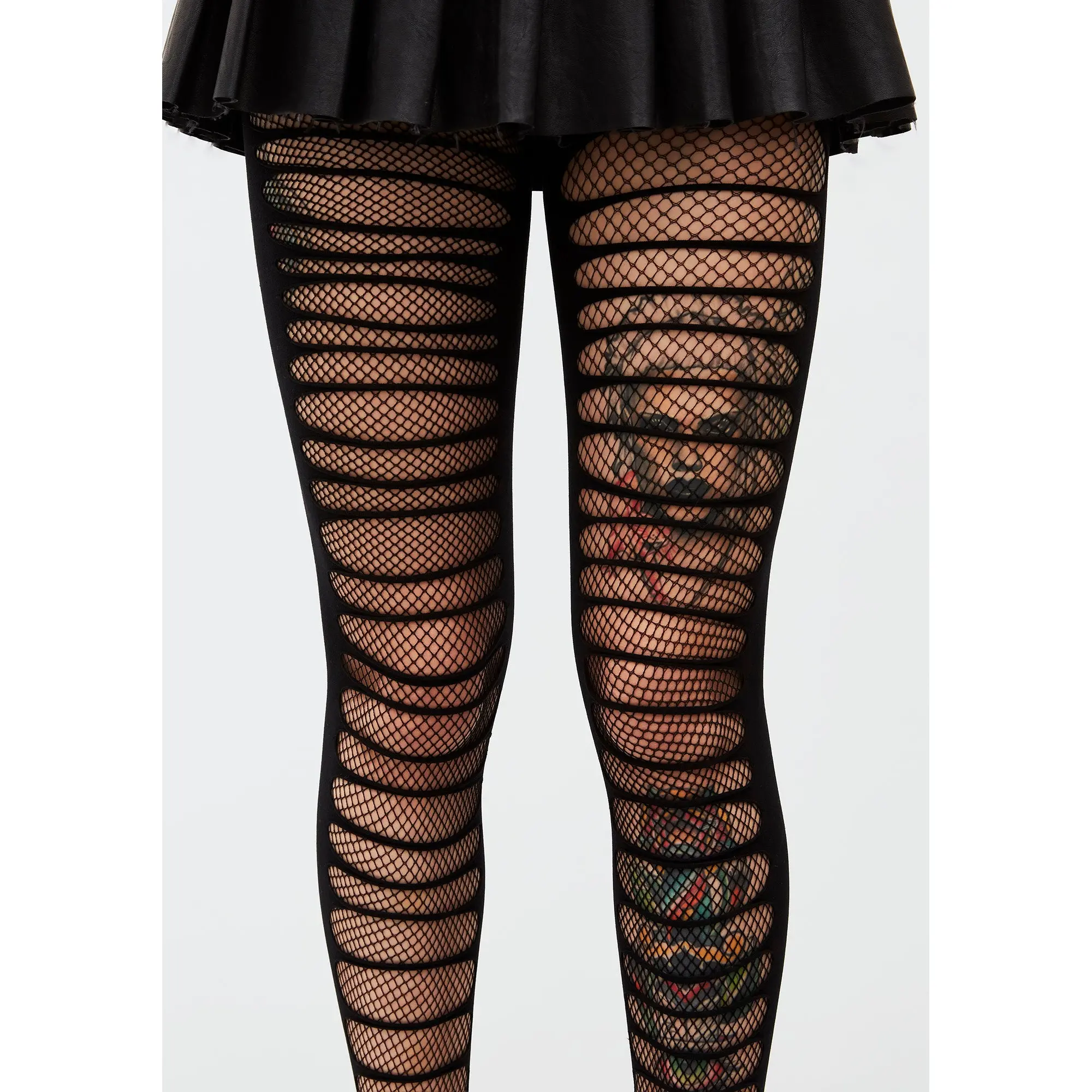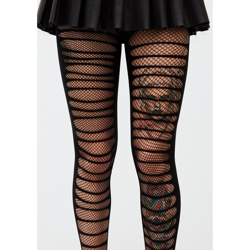 but they can't resist ya. These black tights are ripped N' shredded on the front and have a fishnet layer underneath.