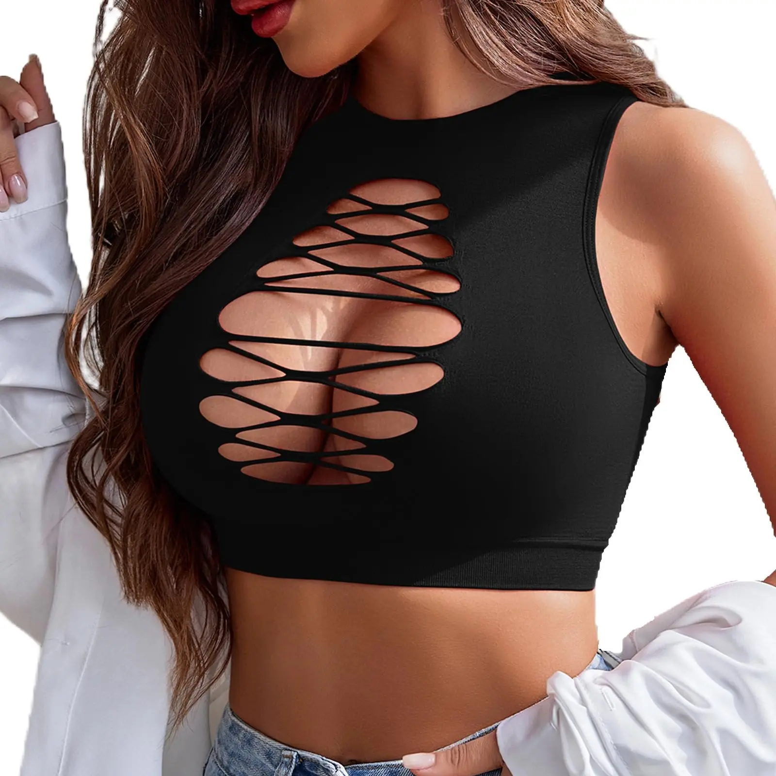 ·Design: Avidlove stunning fishnet top festures front cut out and corset detailing to accentuate your curves. The cute crop top is also sleeveless and has a crew neckline for a chic and fashionable look.