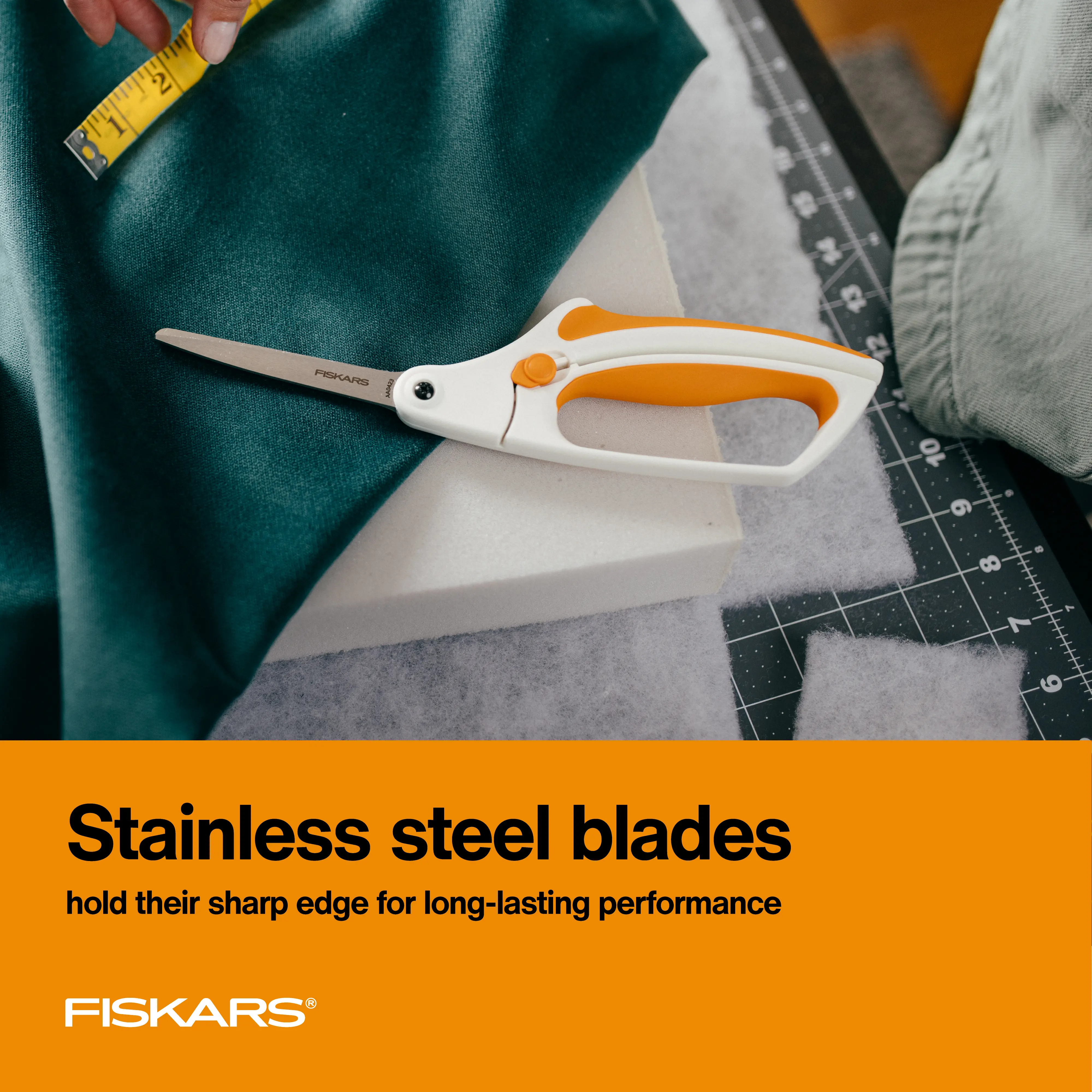 Fiskars Easy Action Scissors, No. 8 help elevate your creativity with a uniquely ergonomic design that reduces hand fatigue while making clean, precise cuts through fabric. An Easy Action spring-assisted handle gently opens the blades after each cut, reducing hand fatigue from repetitive movement. High-grade, precision-ground stainless steel blades hold their sharp edge and cut all the way to the tip. A bent handle design keeps your fabric flat for more precise tabletop cutting, while SoftGrip touchpoints provide added comfort and control. An easy-open lock keeps blades securely closed for safe storage. For every sewing project, cut with a legend.