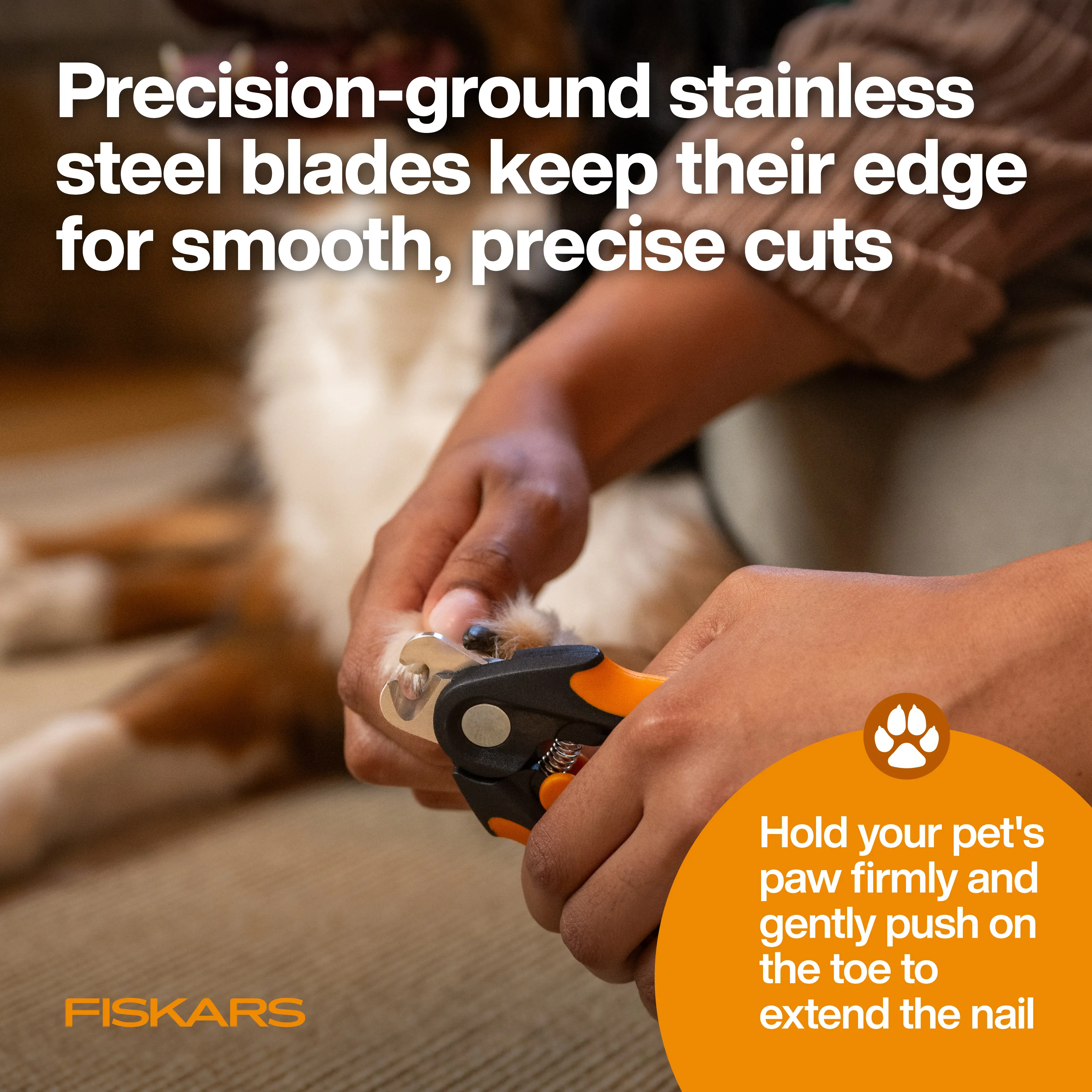 · Trim your pet's nails with improved visibility and control using Fiskars Nail Clippers