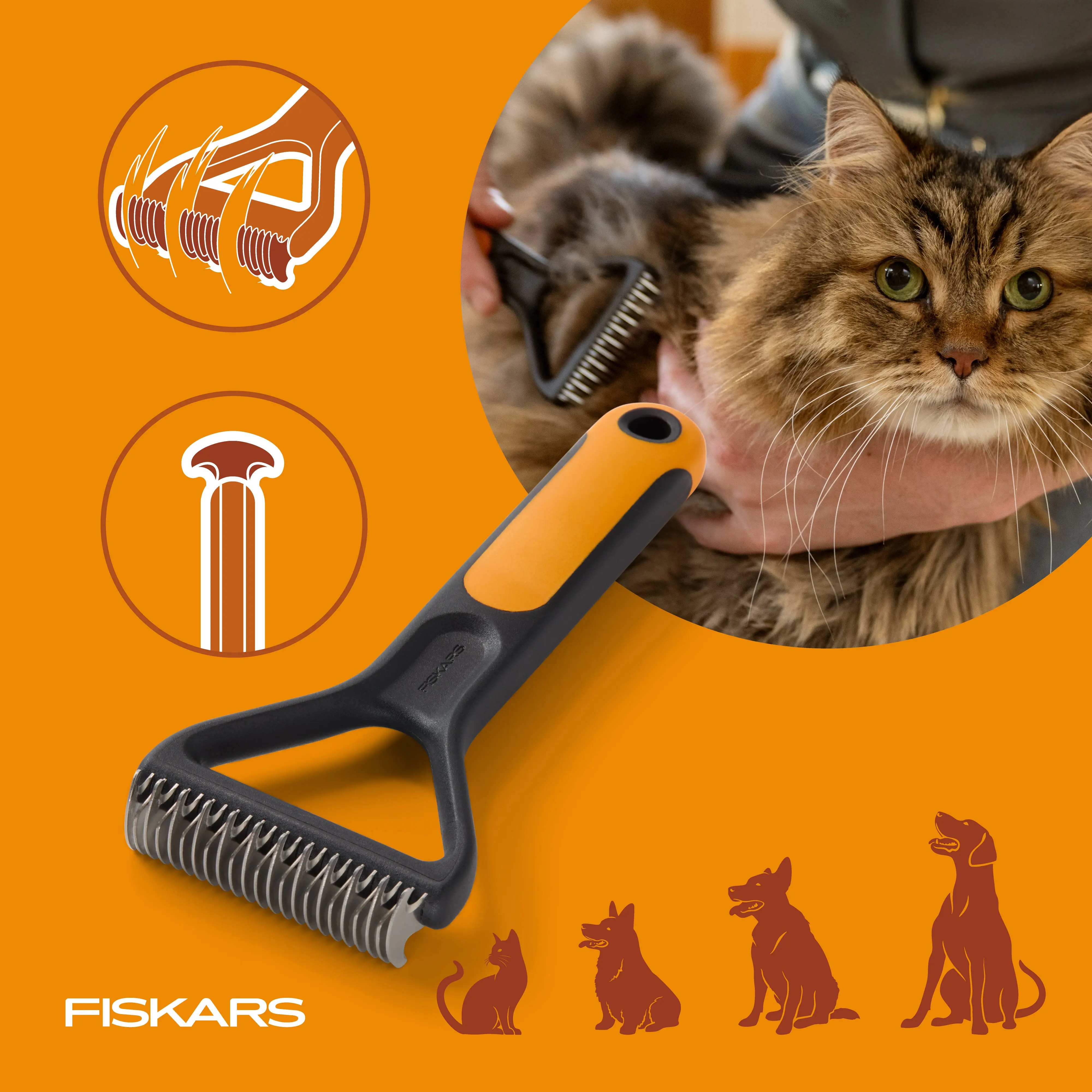 · The Fiskars Dematting Rake makes deshedding and dematting easy for you and your pet