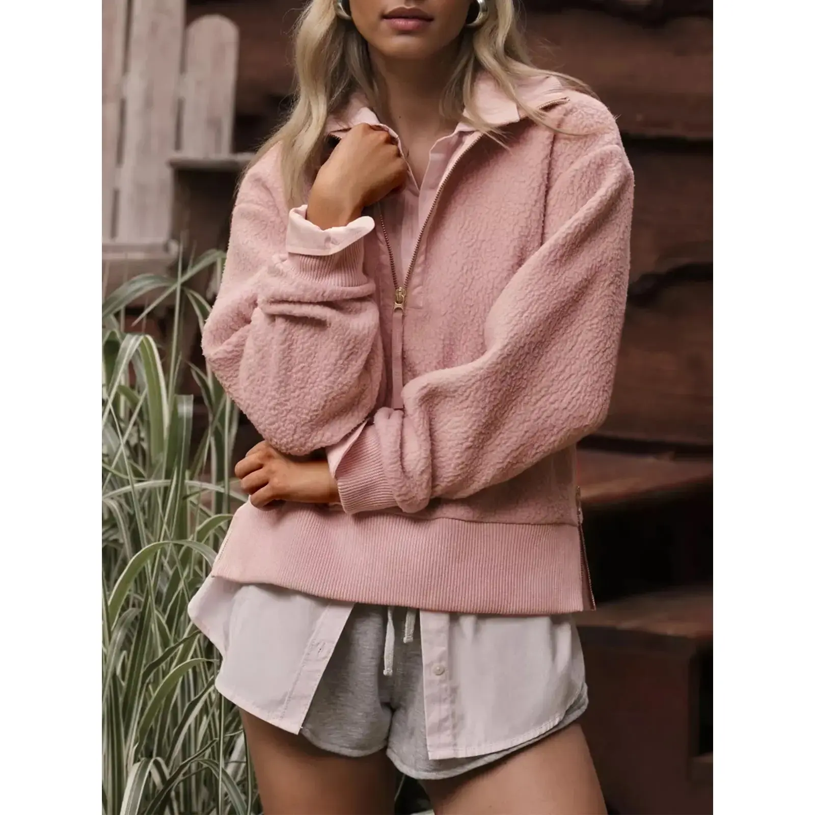 FISOEW 2025 FALL ESSENTIALS SOFT FLEECE PULLOVER WITH ZIP & POCKETS