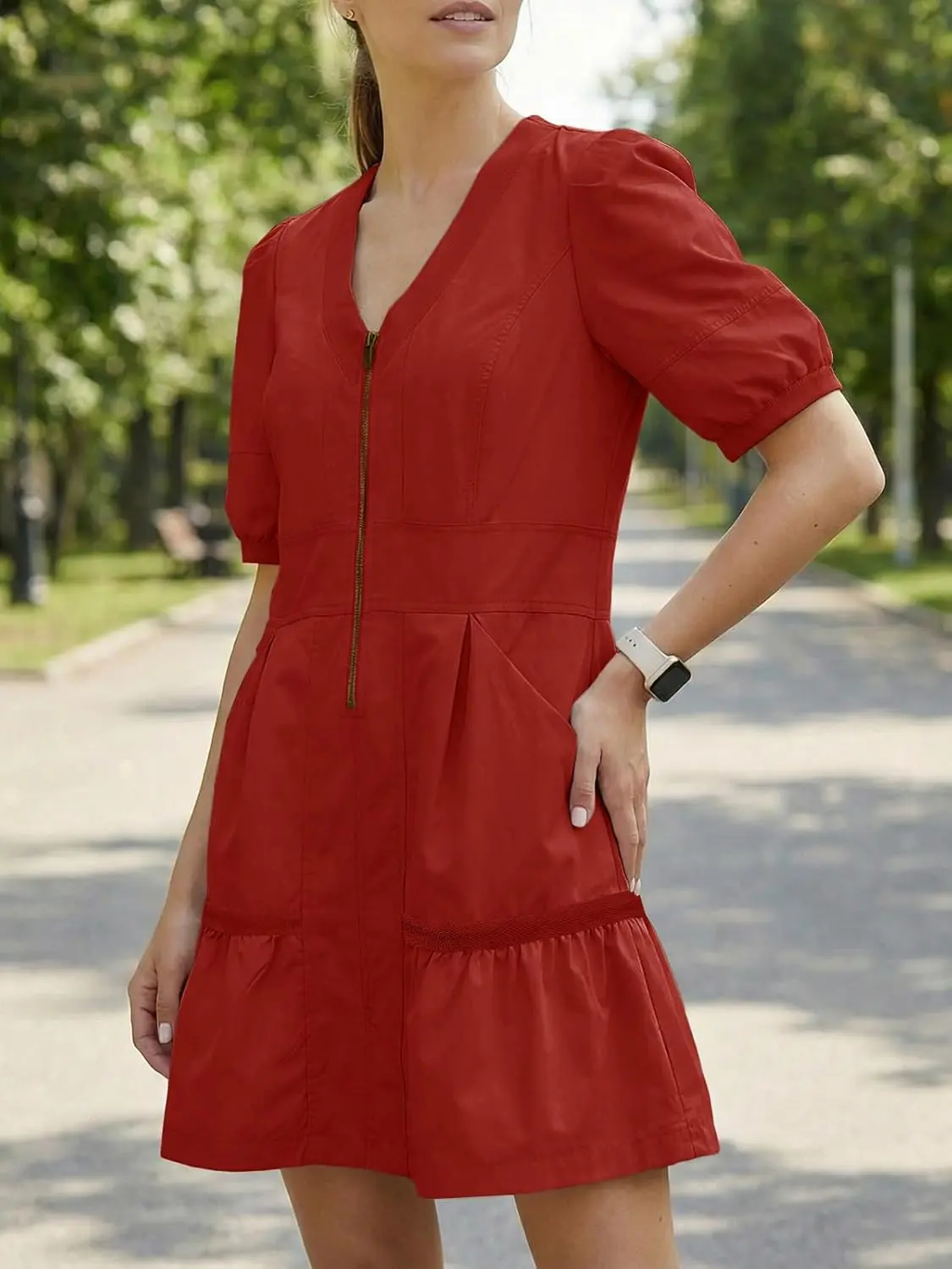 🌟 Fisoew Women Coral Mesh Cutout Puff Sleeve Mini Dress 🌟