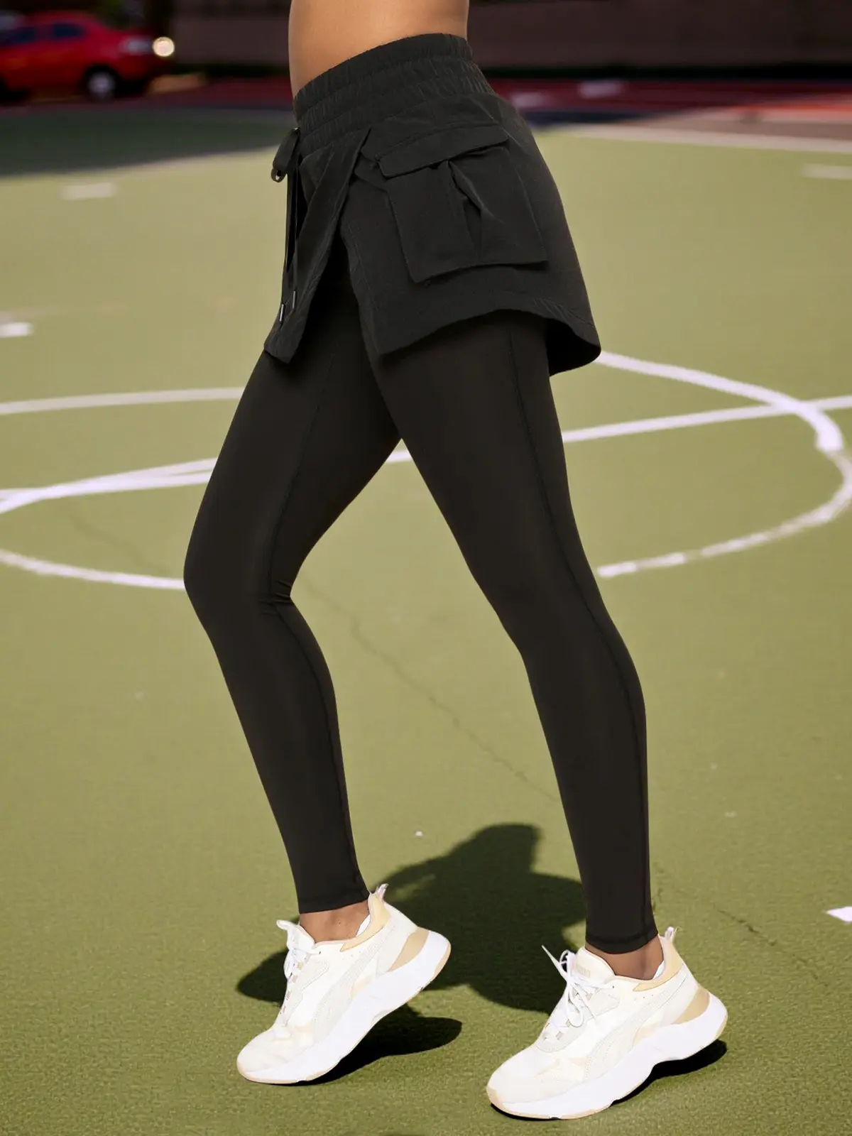 2 in 1 Design: Combines a skirt overlay with leggings, offering the coverage of leggings and the stylish look of a skirt for tennis, workouts, or daily wear.