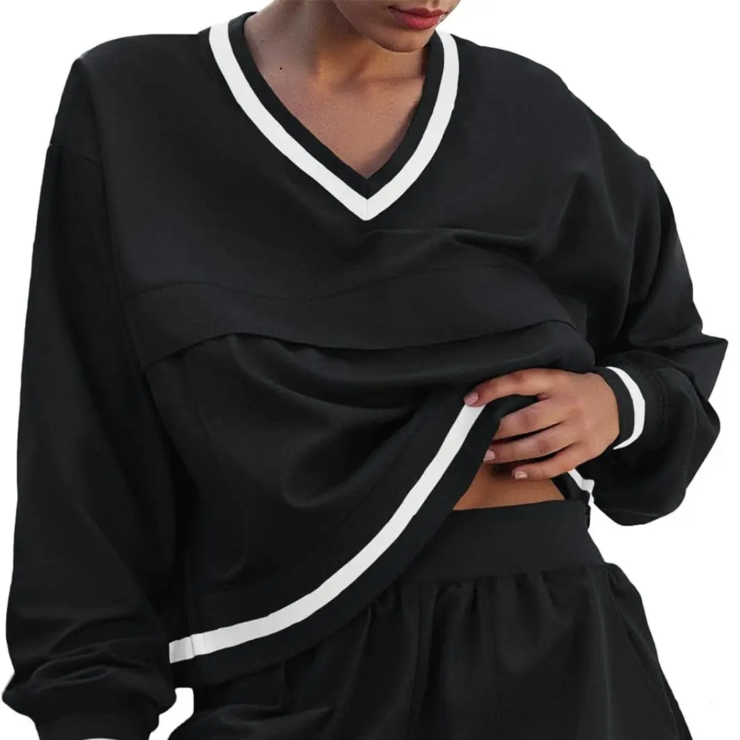 ⨠The long sleeve sweatshirt offers lantern sleeves for a loose fit. It features trendy elements, making workout sets unique. The design effectively modifies the neckline, showcasing an elegant temperament suitable for various face and body shapes. Enhance your workout wardrobe with this piece.