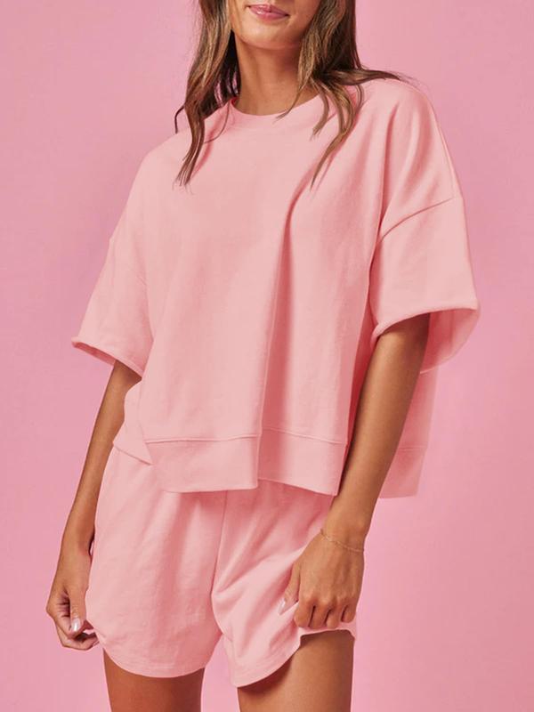 FISOEW Women's 2-Piece Outfits: Casual Oversized Cropped Sweatshirt and High Waist Running Shorts Tracksuit Set