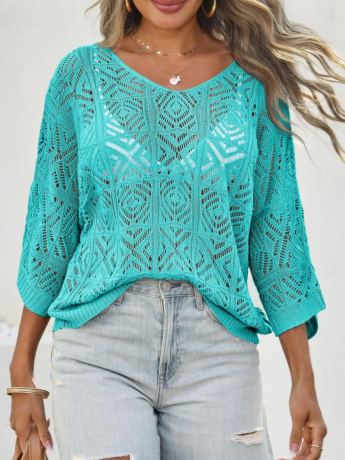 ·🌸 Features a flattering V-neckline, short sleeves, and intricate crochet detailing. Creates a delicate boho-inspired silhouette, combining modesty with sensual allure.