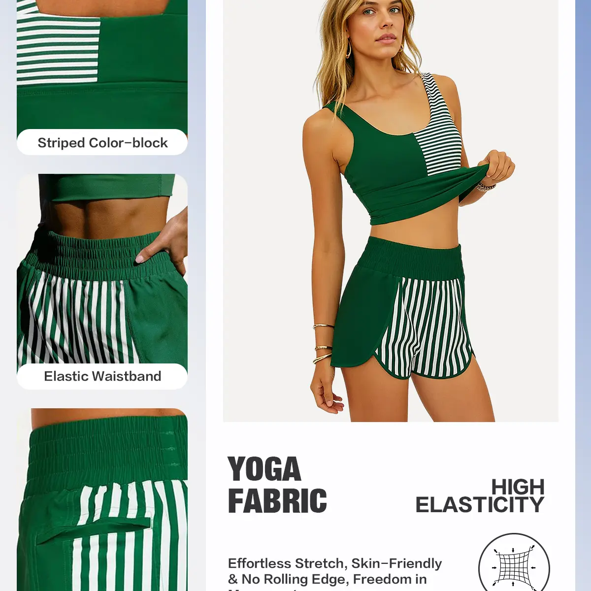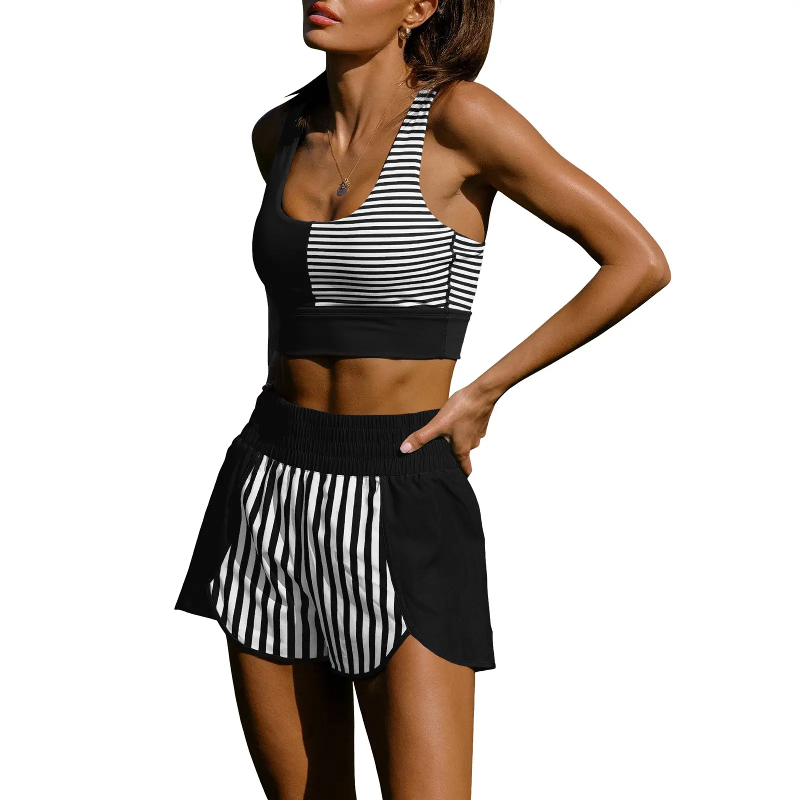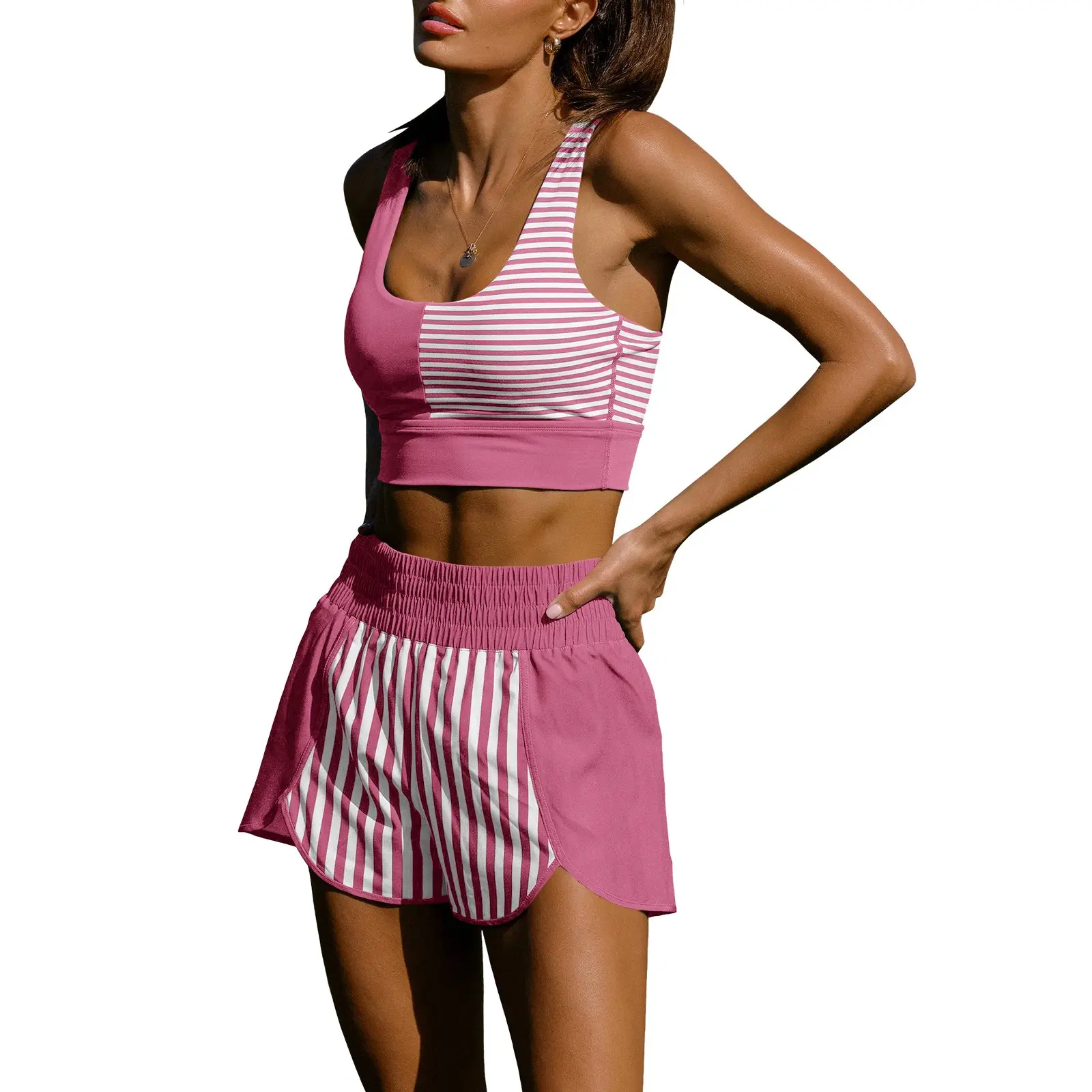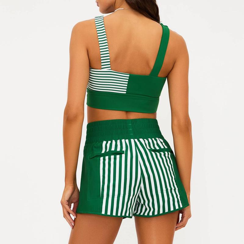 Stripe Colorblock Activewear Set - Racerback Sports Bra + Flowy Shorts for Gym, Game Day & Casual