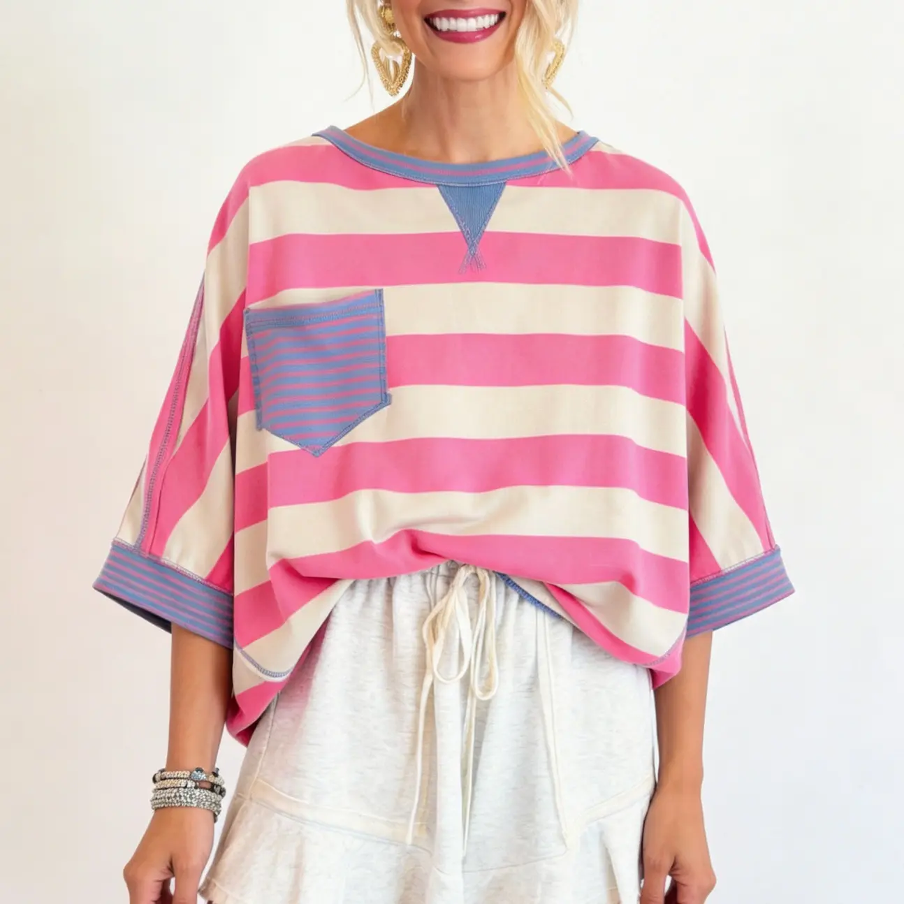 📐 Fit & Silhouette 📐 - Oversized drop shoulder silhouette creates a relaxed, casual vibe that flatters all body types. - Classic half sleeves with a relaxed, unrestricted fit perfect for warm weather.
