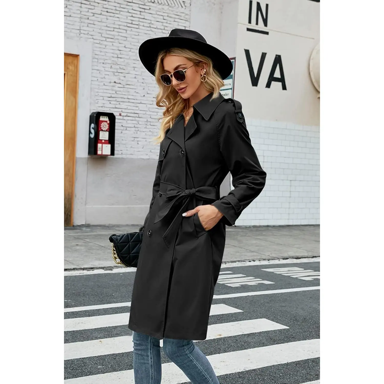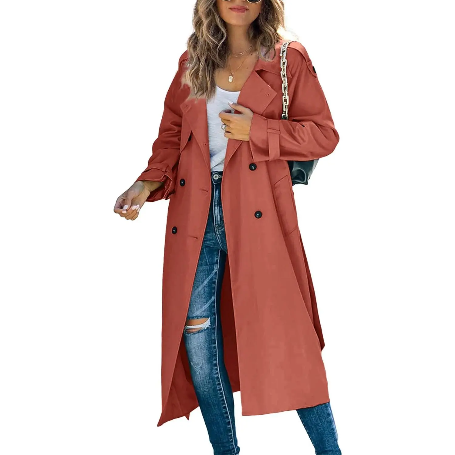 Women's Double Breasted Long Trench Coat Windproof Lapel Slim Overcoat