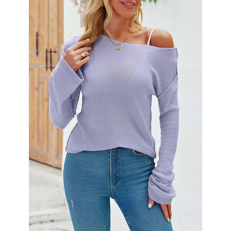 Womens Boat Neck Shirts Long Sleeve Knit Pullover Sweater Blouse Tops #knit #blousetop #pulloversweater