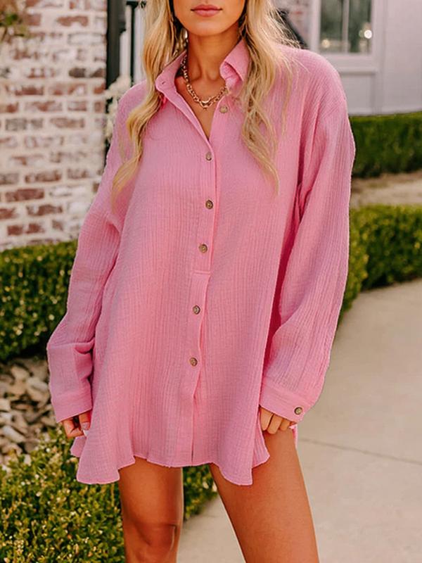 2 - Piece Plus Size Setļ¼Includes a loose - fit gauze shirt and matching safety shorts. The oversized shirt offers a relaxed, effortless look, while the shorts provide coverage and comfort.