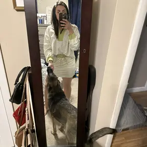 ·The outfit incorporates striped design with contrasting colors, adding visual hierarchy.