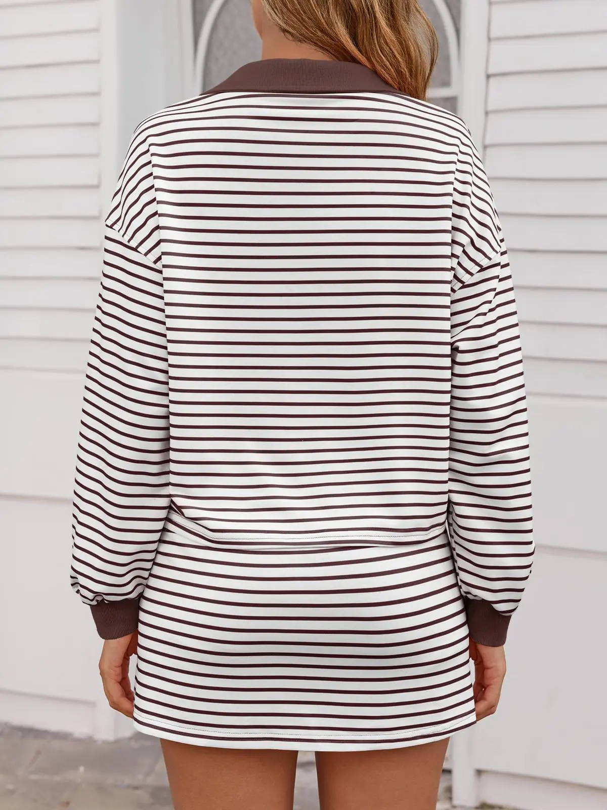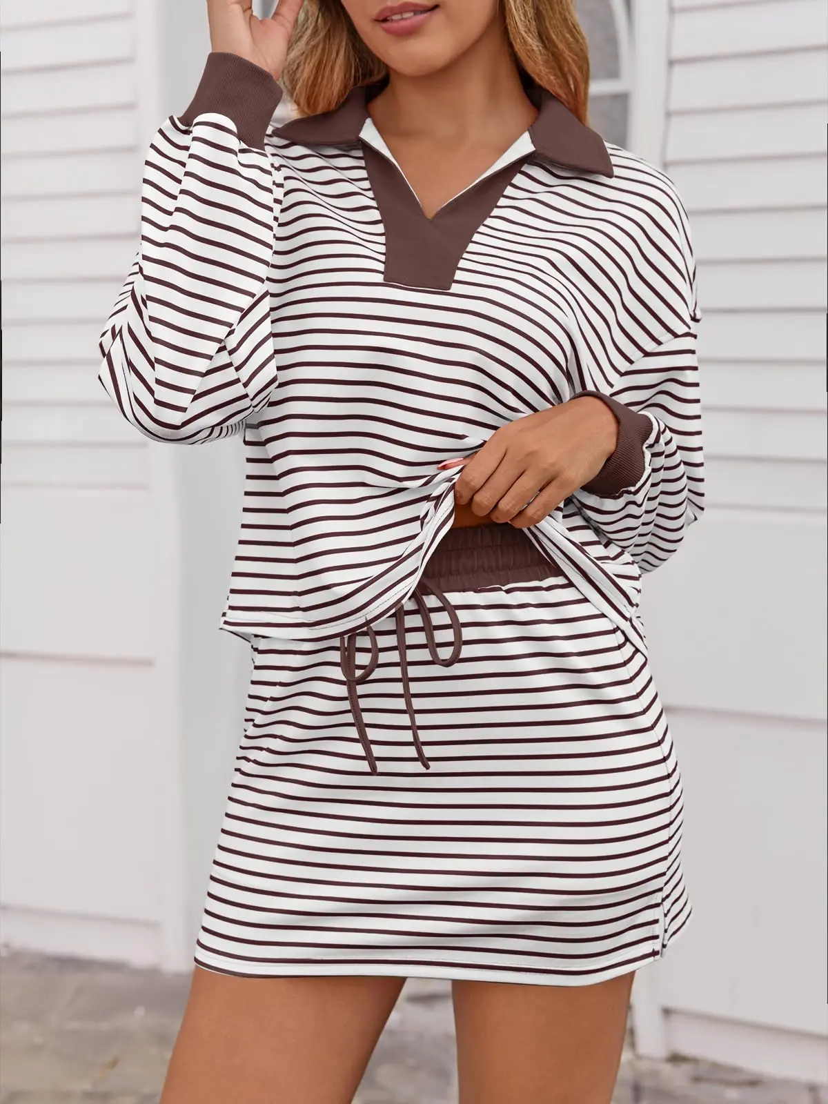 FISOEW WOMEN'S STRIPED 2 PIECE SET LONG SLEEVE SWEATSHIRT & SKORT WORKOUT LOUNGE OUTFIT