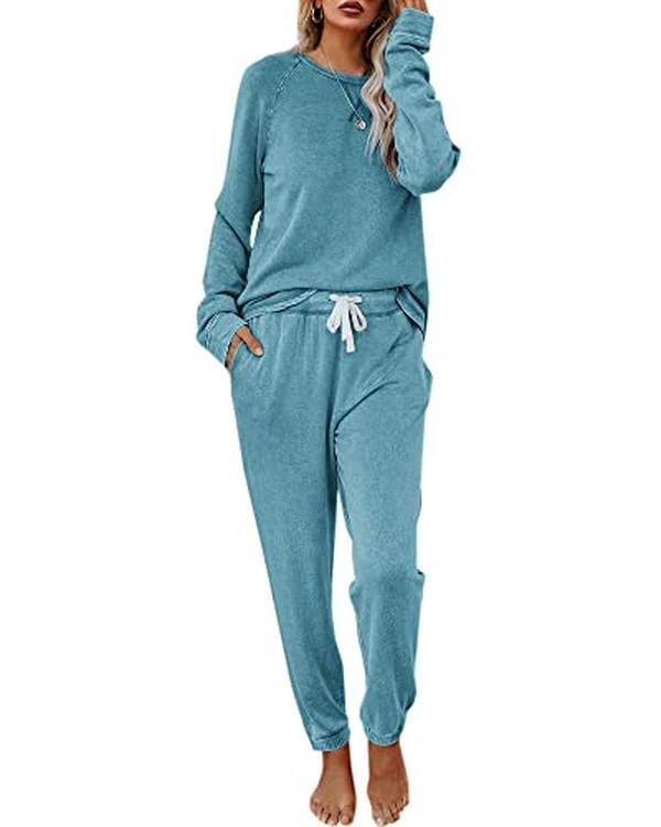 Features: Letter printed, printed graphic, long sleeves, crewneck pullover top, joggers pants with adjustable drawstring, solid color, relaxed fit style, womens 2 piece loungewear set