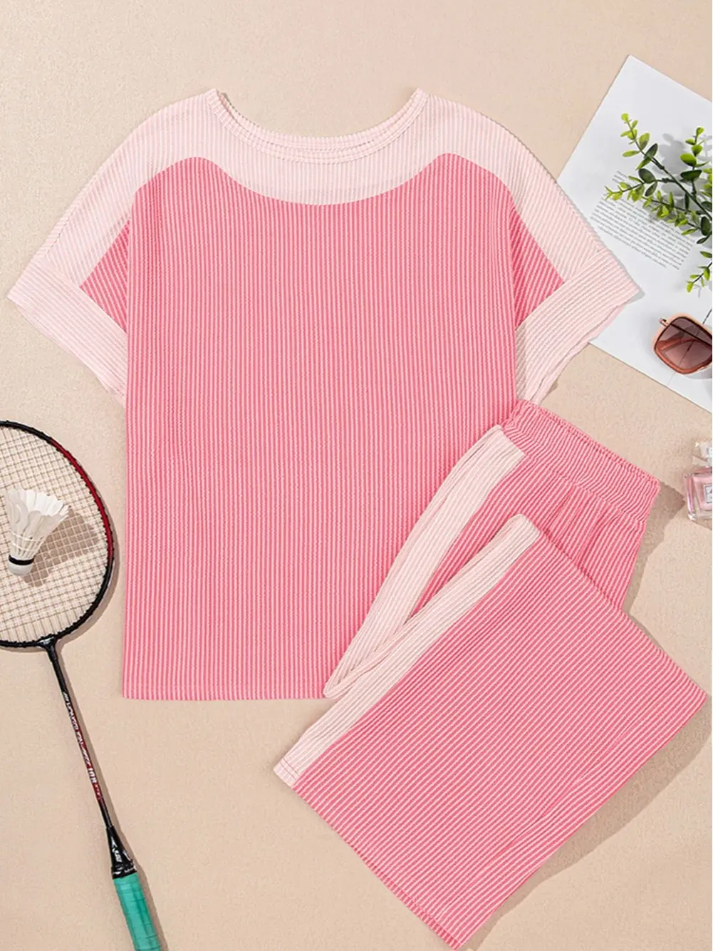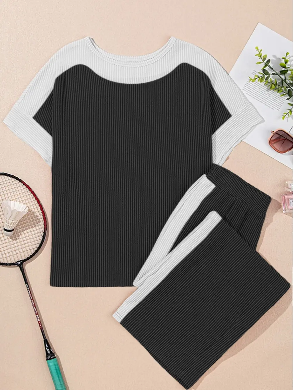 Made from lightweight ribbed fabric, this set feels soft, breathable, and stretchy. Perfect for all-day wear in any season, it ensures comfort without compromising style. The elastic waistband adds to the comfort, making it ideal for daily activities.