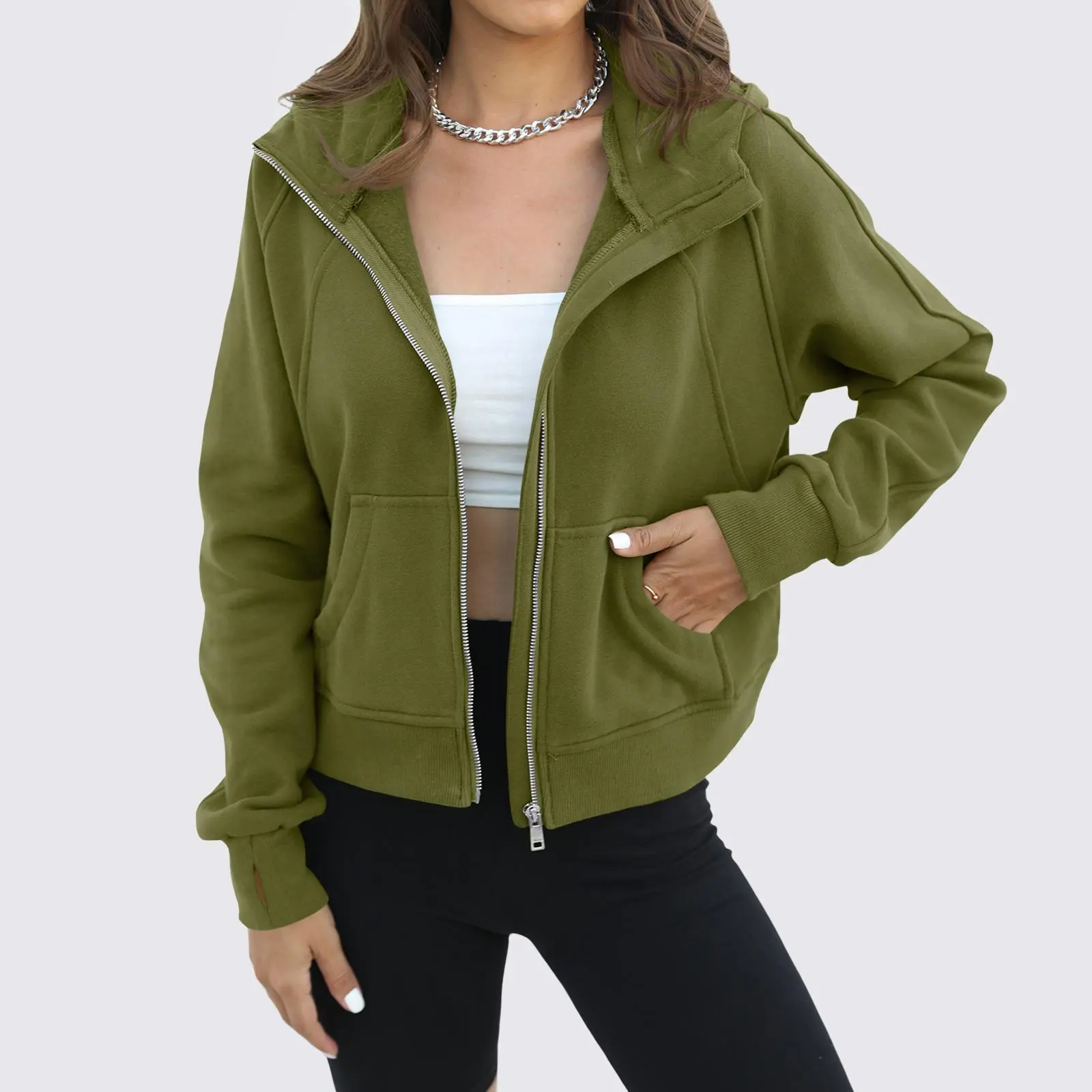 ·FEATURES - Long Sleeve Tops For Women/Solid Color/Zip Up Sweatshirt/Ribbed Cuffs And Hem/Fleece Lined/Kangaroo Pocket/Dropped Shoulder/Thumb Hole/Loose Fit Style/Cropped Hoodie/Casual Tops For Women/Tunic Sweatshirts For Women