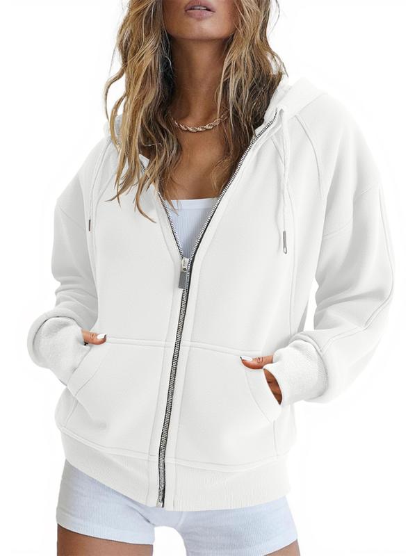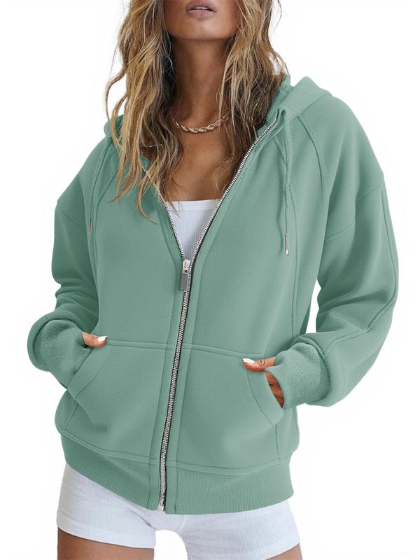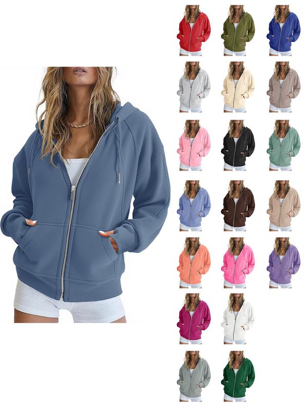 This women's zip-up sweatshirt is crafted from soft polyester and cotton, ensuring skin-friendliness and durability. Perfect for spring and fall, it fits all body types. The material resists deformation, making it ideal for daily wear. Choose from seven basic colors: Black, Pink, Green, Dark Grey, and Dark Blue. These versatile tops are suitable for various occasions.