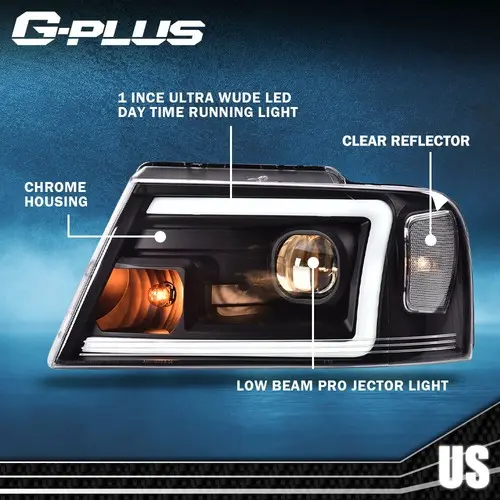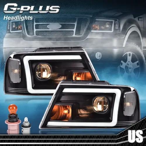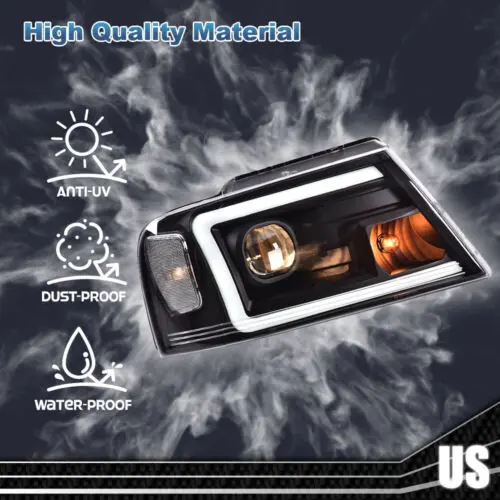 Fit For 04-08 Ford F-150/Lincoln Mark LT LED DRL Projector Headlights Black New
