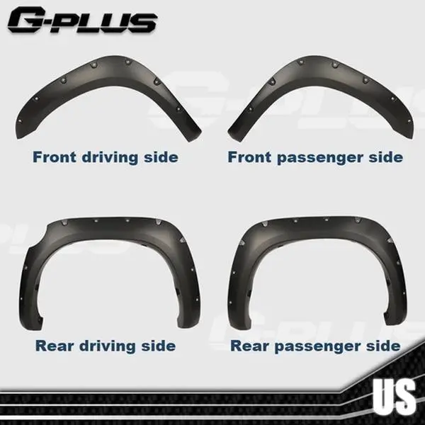 Fit For 07-13 Toyota Tundra Pocket Rivet Style Fender Flares Smooth Black 4pcs