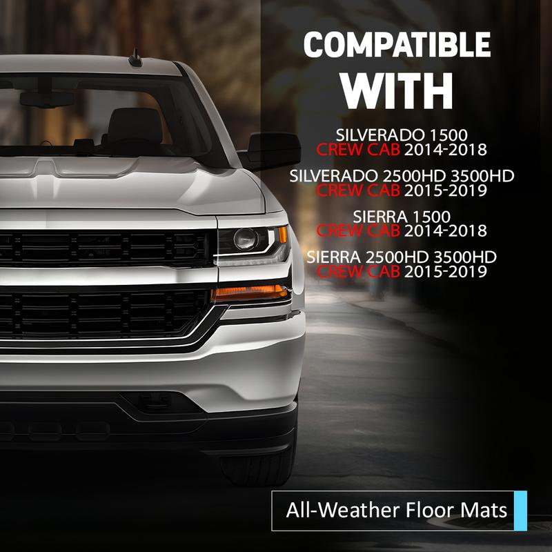 5. Fit For 14-18 Chevy Silverado/GMC Sierra 1500 2500HD 3500HD Crew Cab TPE Floor Mats Liners