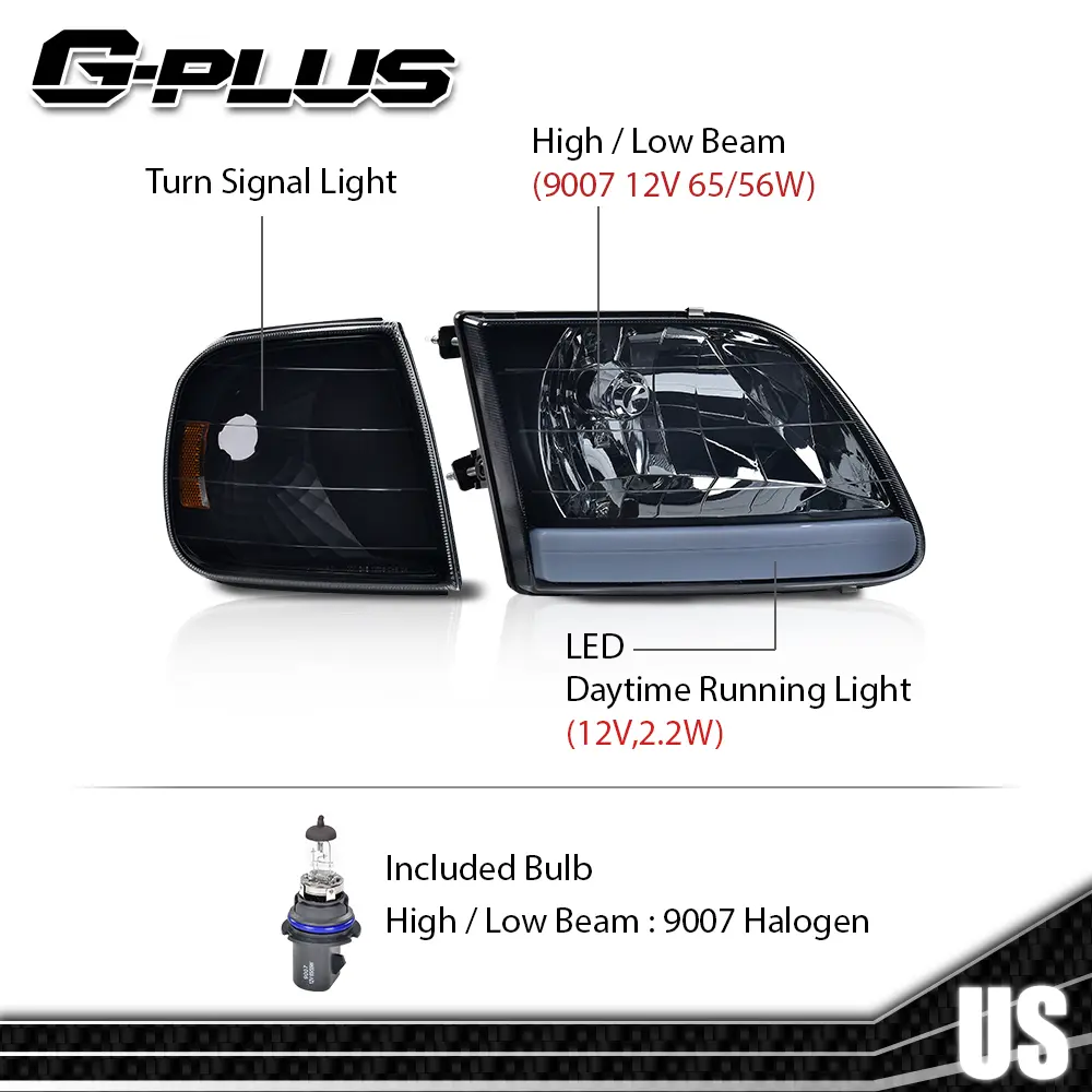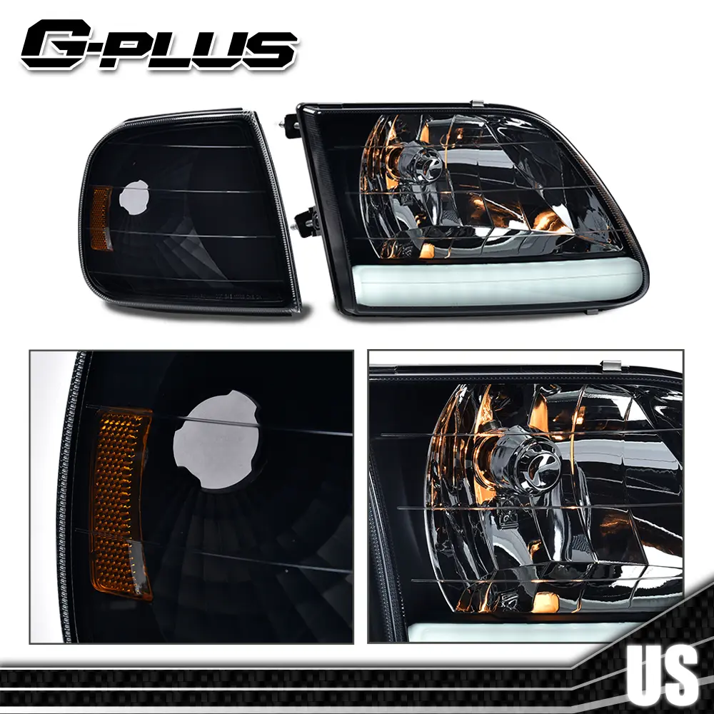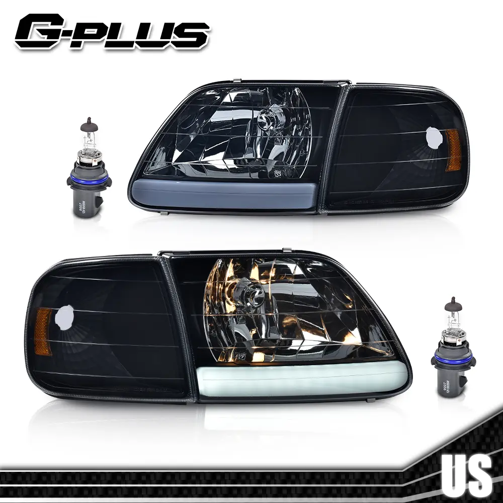 Fit For 97-04 F150 Expedition Smoke LED Tube Headlights & Corner Parking Lights