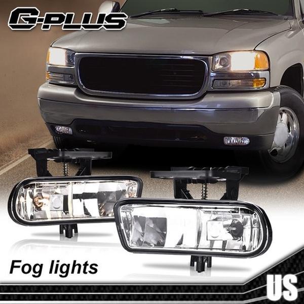 4. Fit For 99-06 GMC Sierra Yukon 1Pair Chrome Clear Fog Lights Bumper Lamps